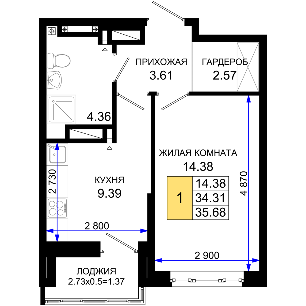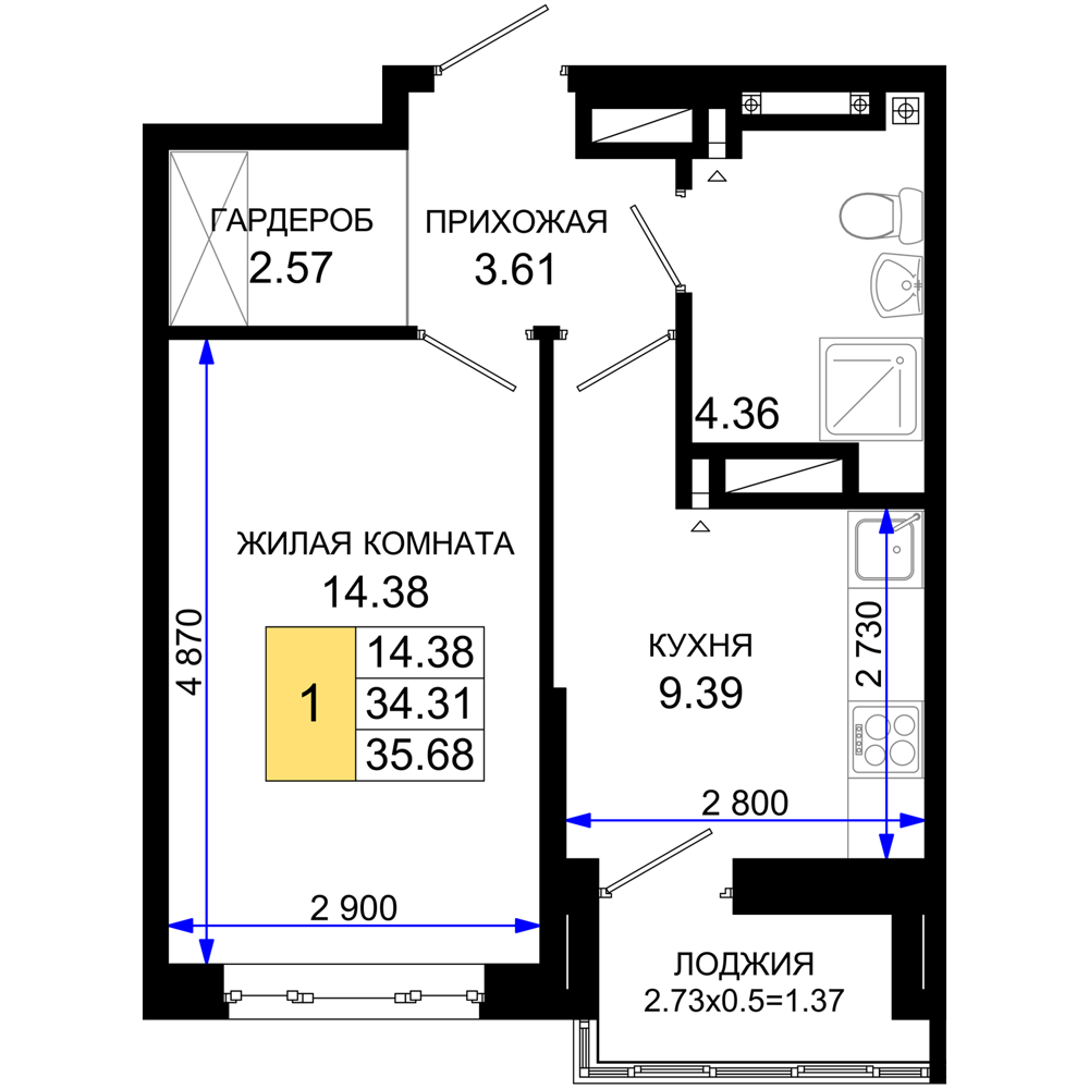 1-комнатная (34.96м2)