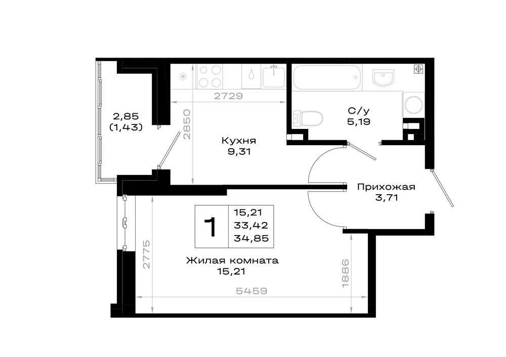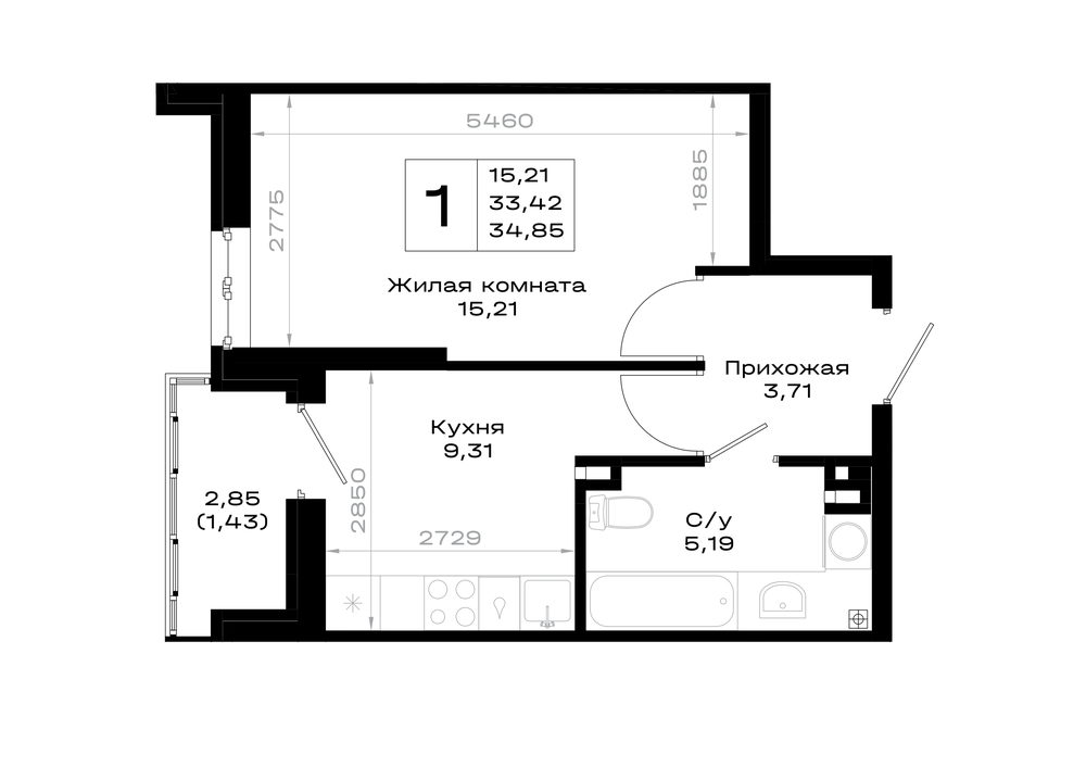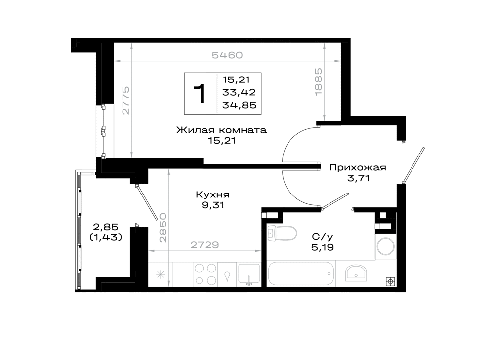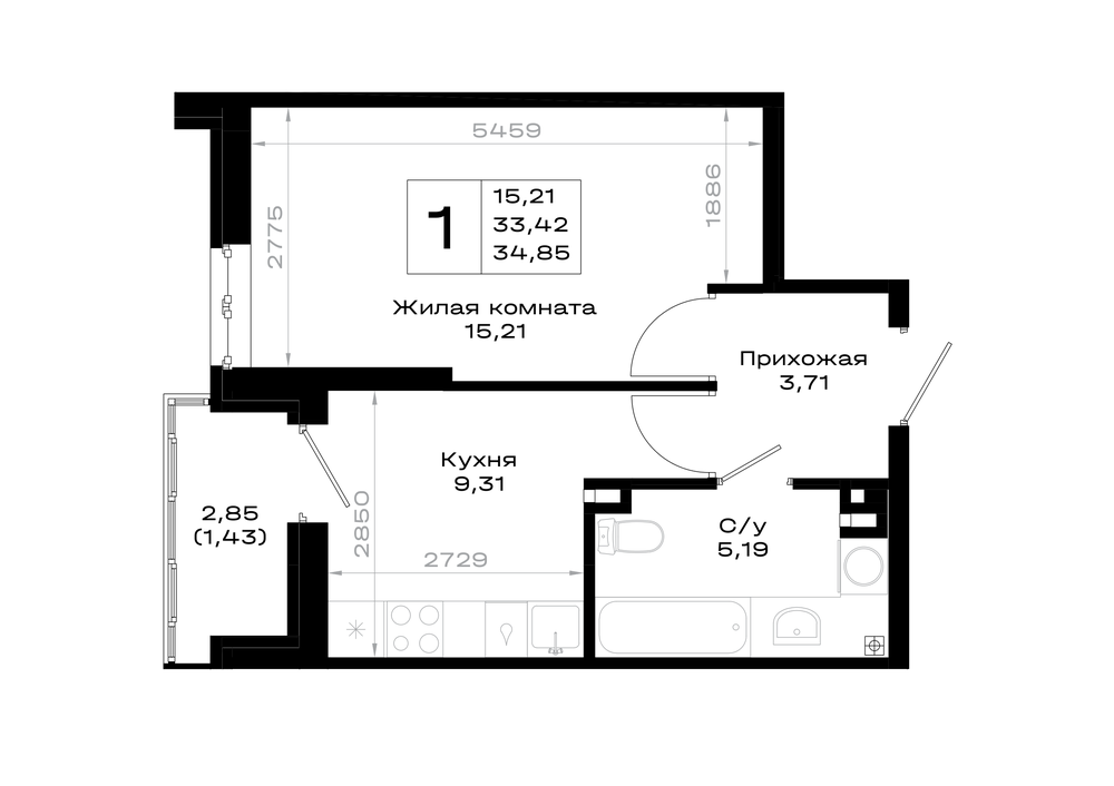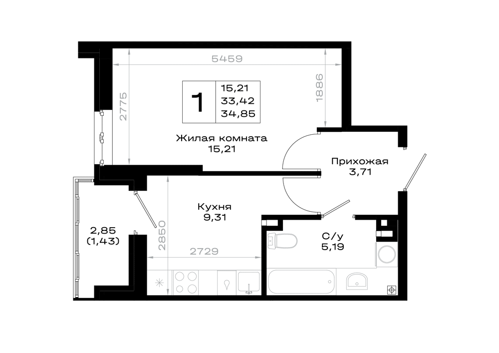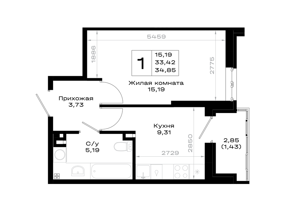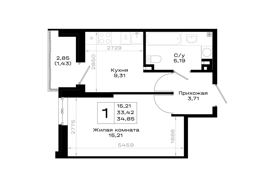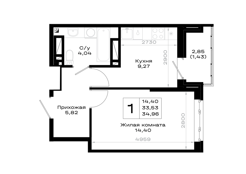 1-комнатная (34.85м2)