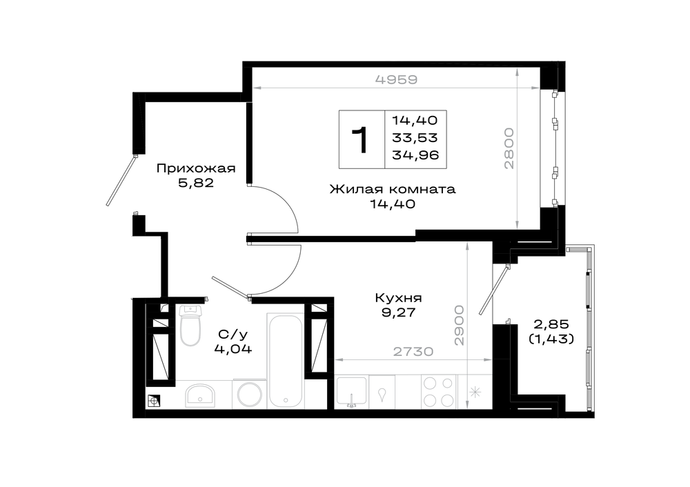 1-комнатная (34.96м2)