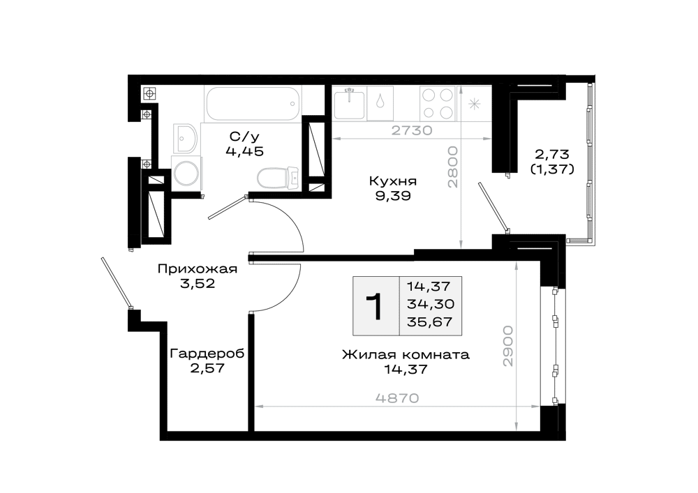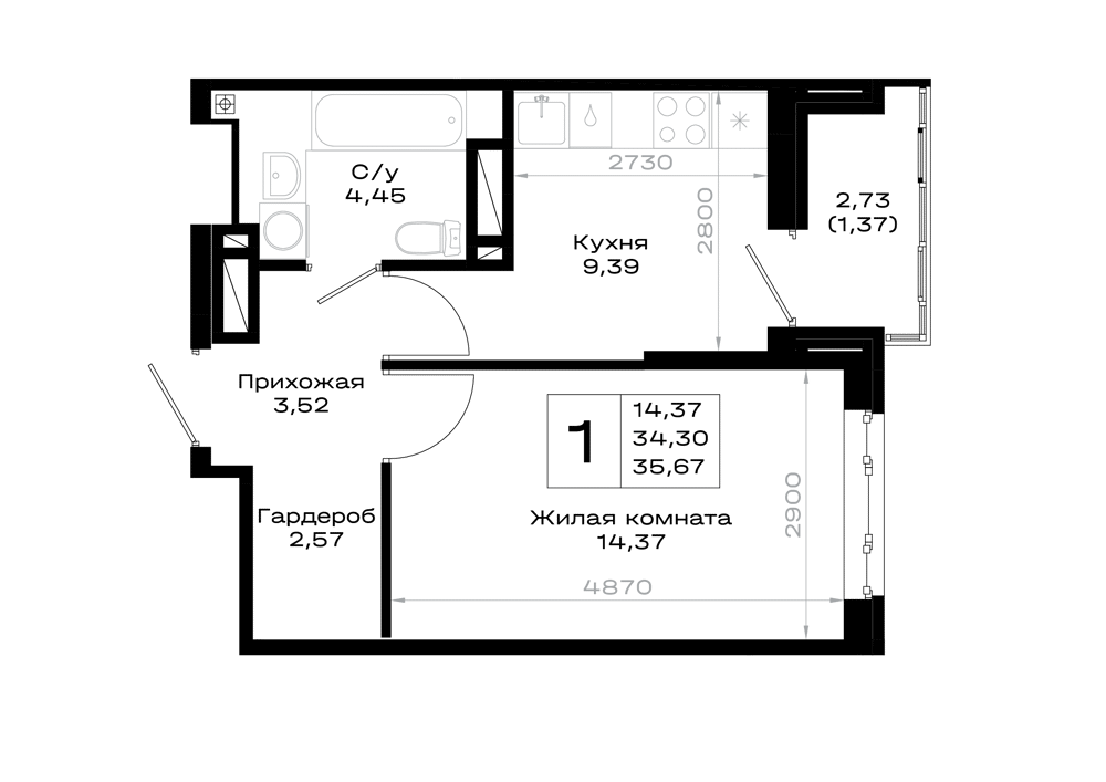 1-комнатная (35.67м2)