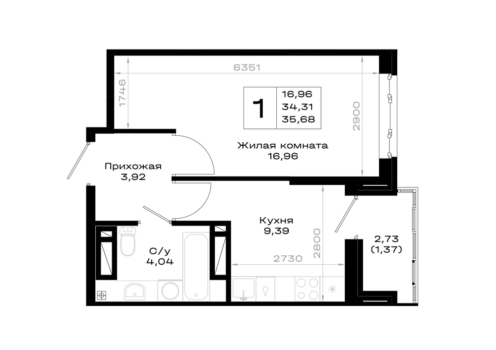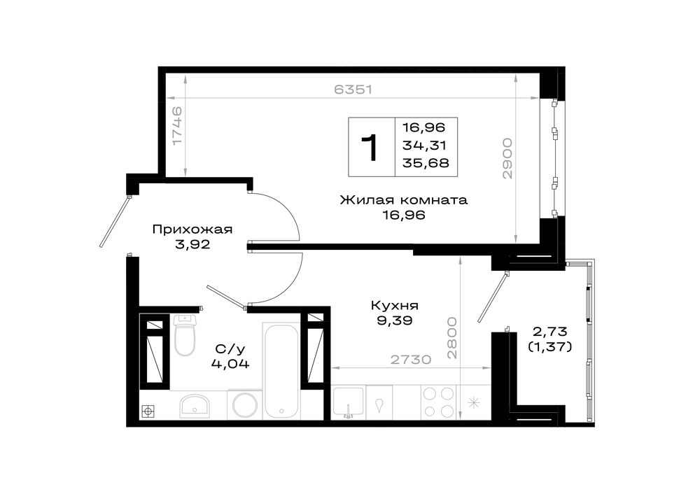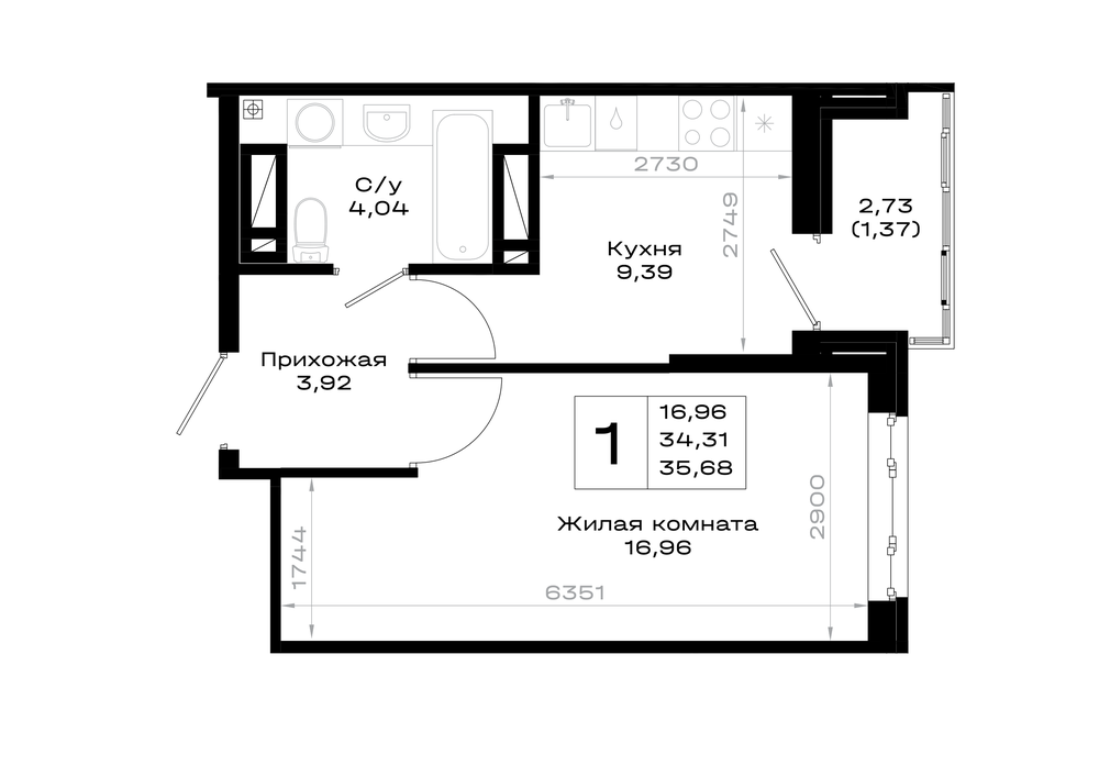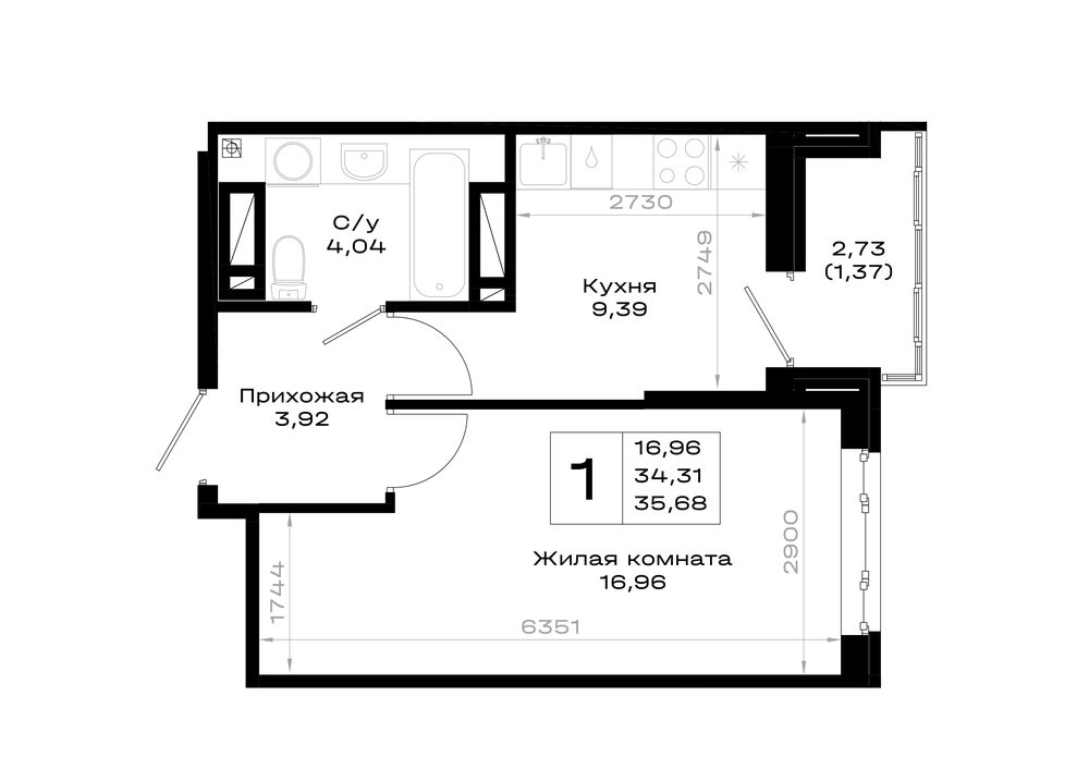 1-комнатная (35.68м2)