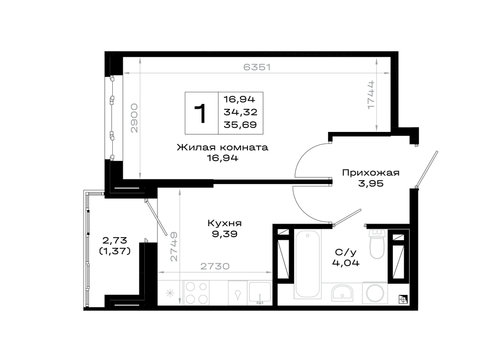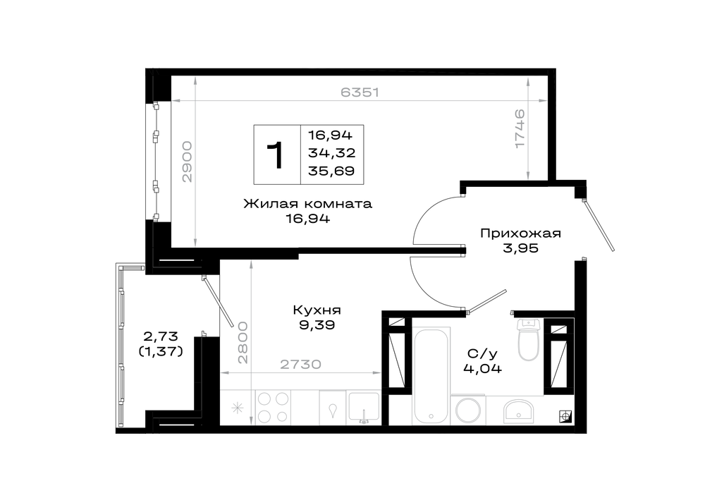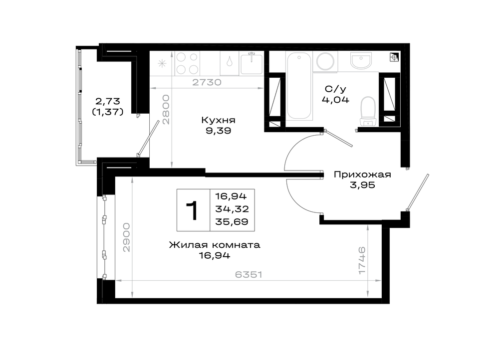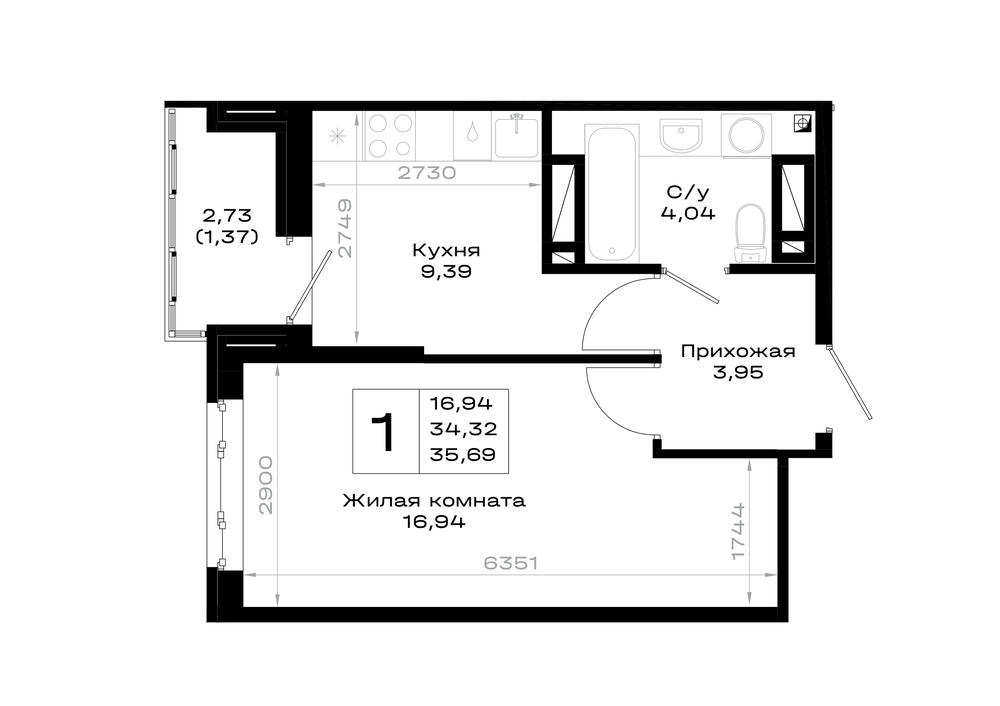 1-комнатная (35.69м2)