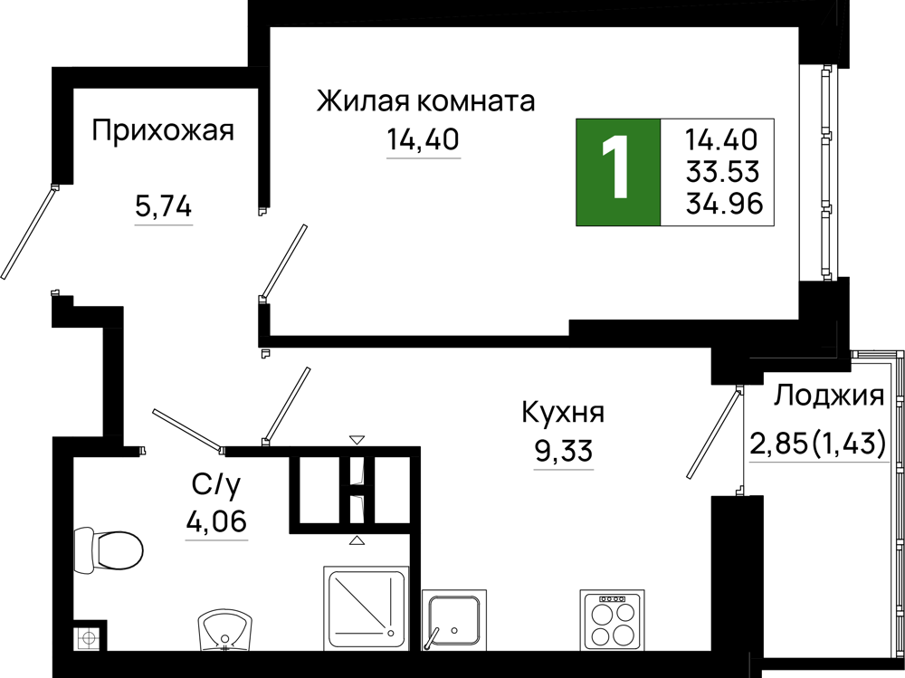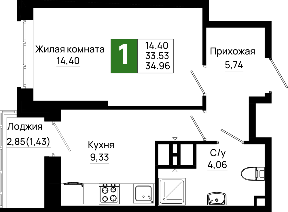 1-комнатная (34.96м2)