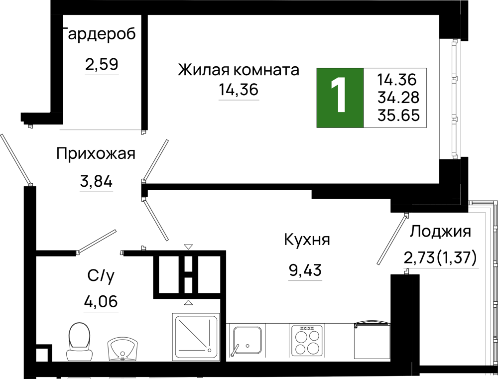 1-комнатная (35.65м2)