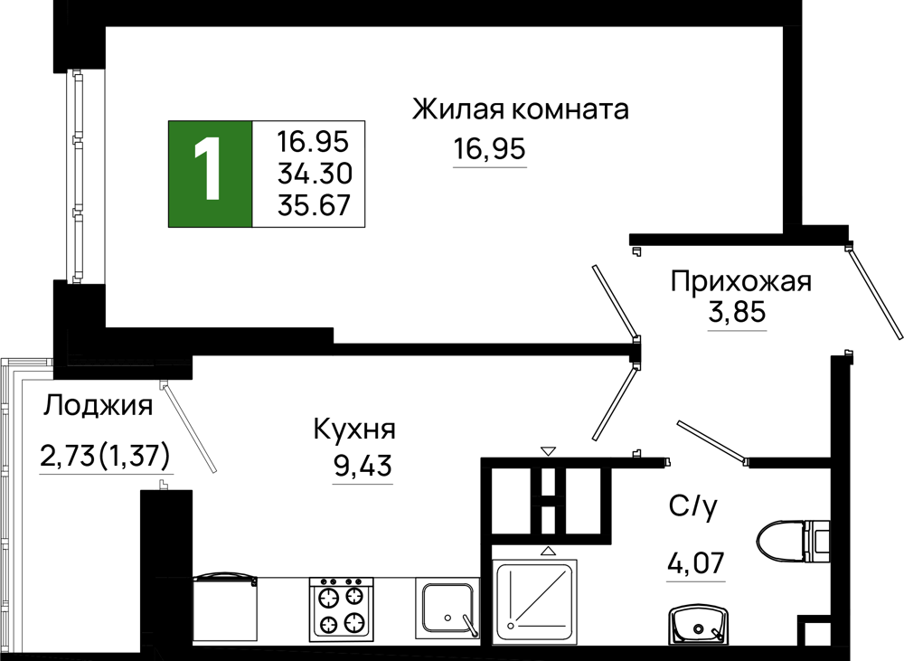 1-комнатная (35.67м2)
