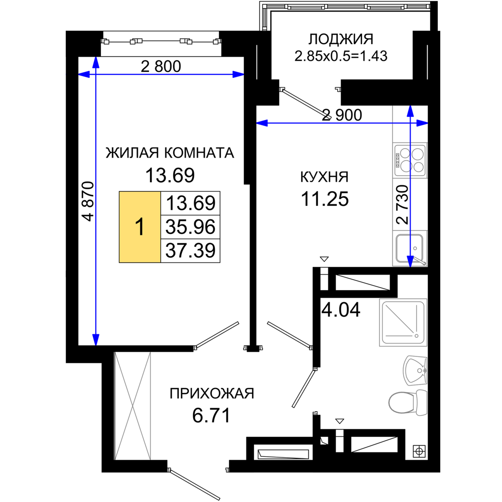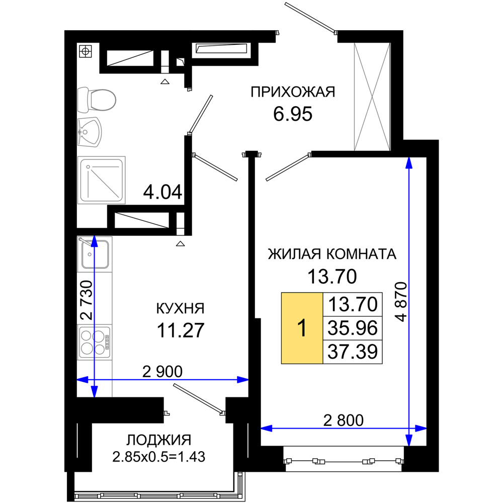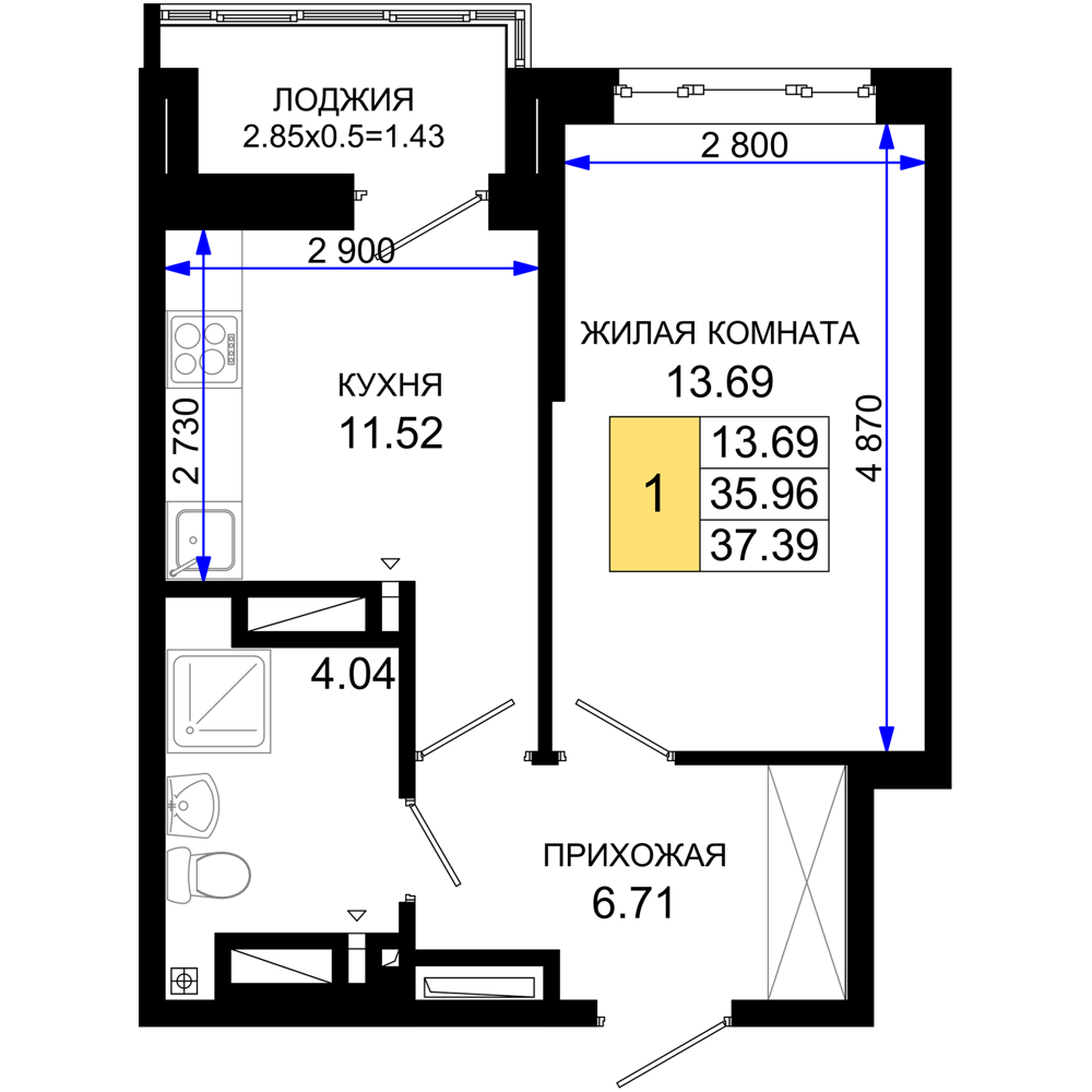 1-комнатная (37.39м2)