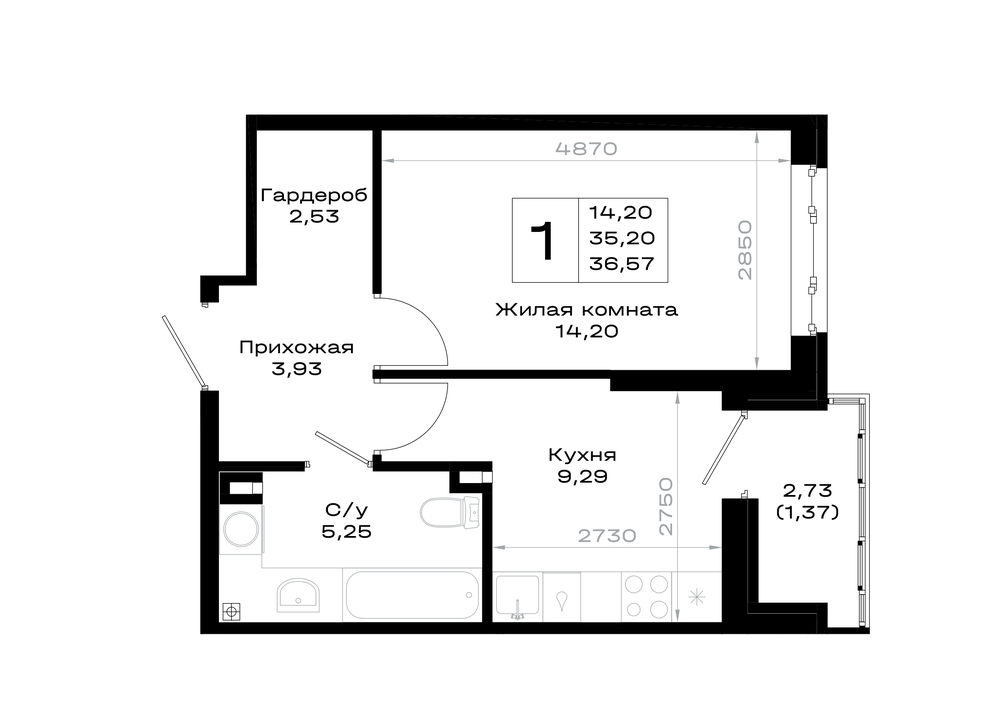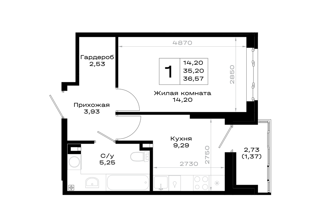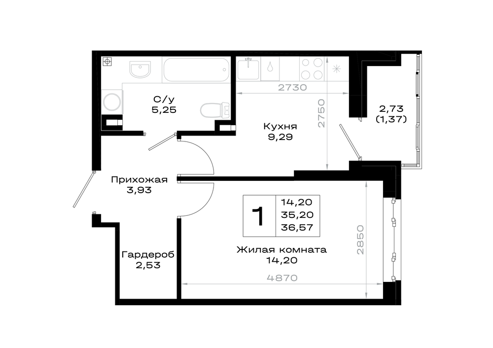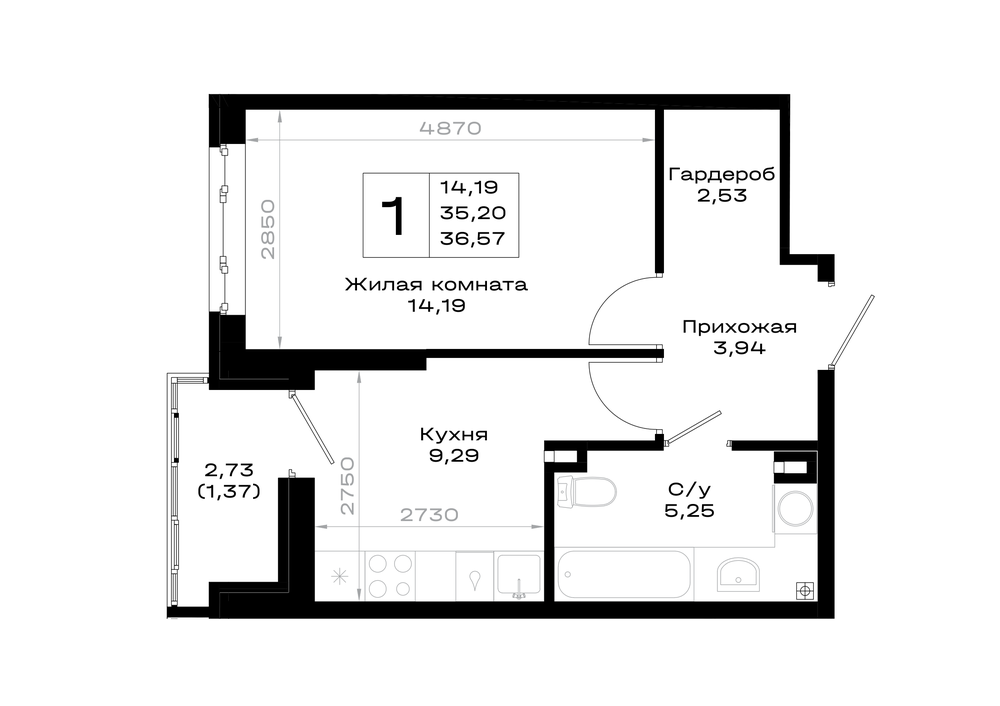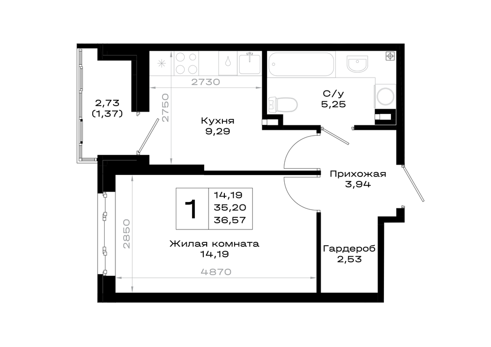 1-комнатная (36.57м2)