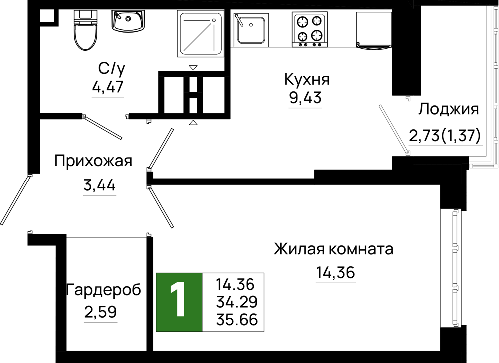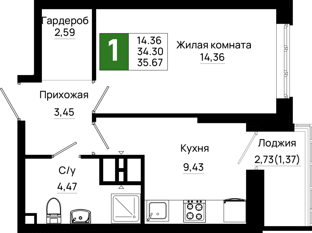 Однокомнатные квартиры в ЖК Октябрь Парк - страница 58