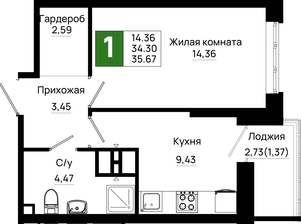 Однокомнатные квартиры в ЖК Октябрь Парк - страница 59