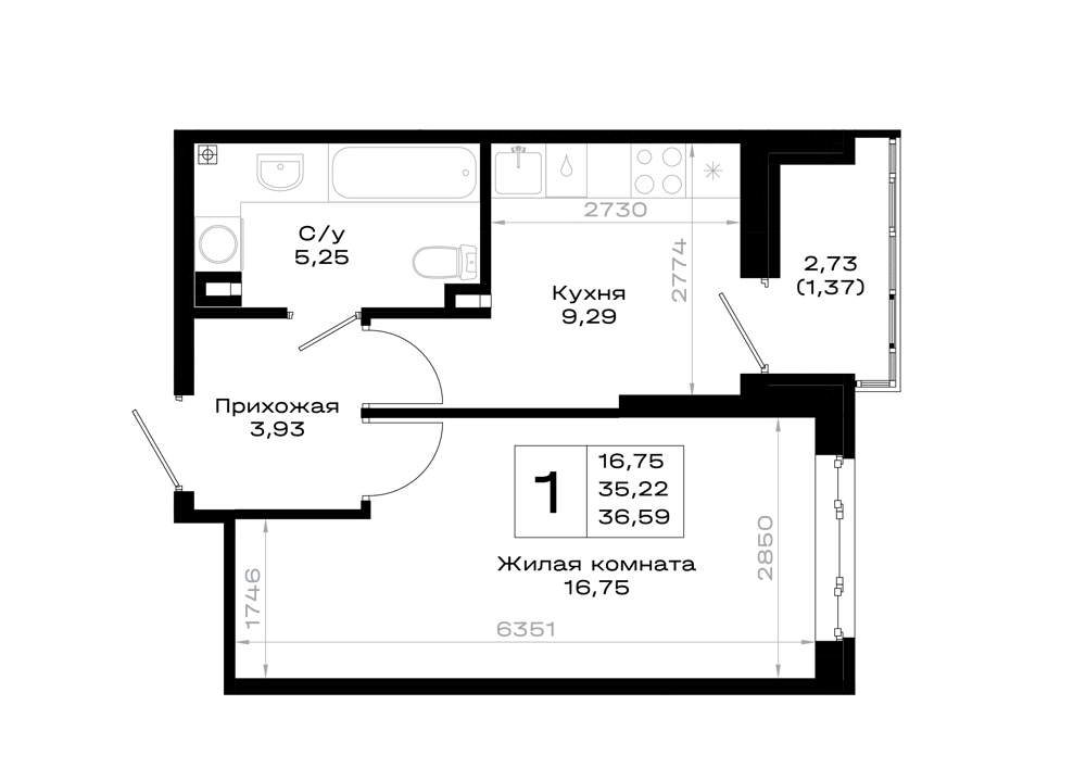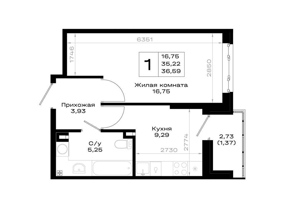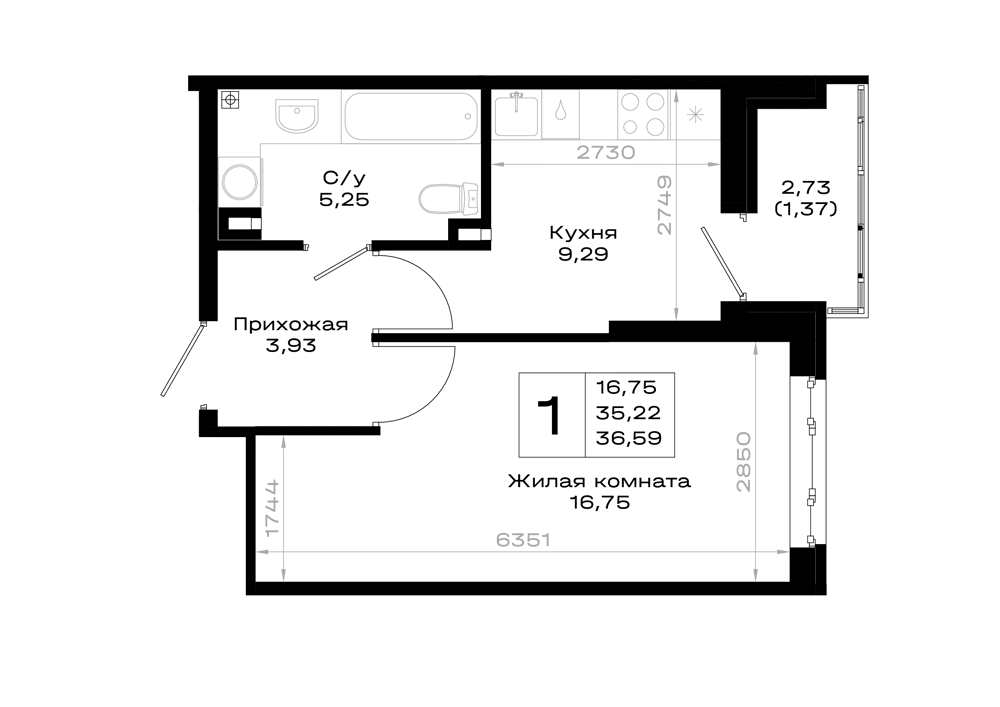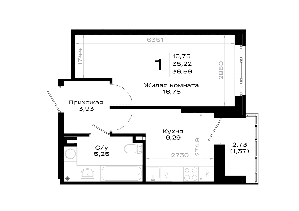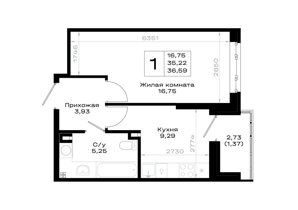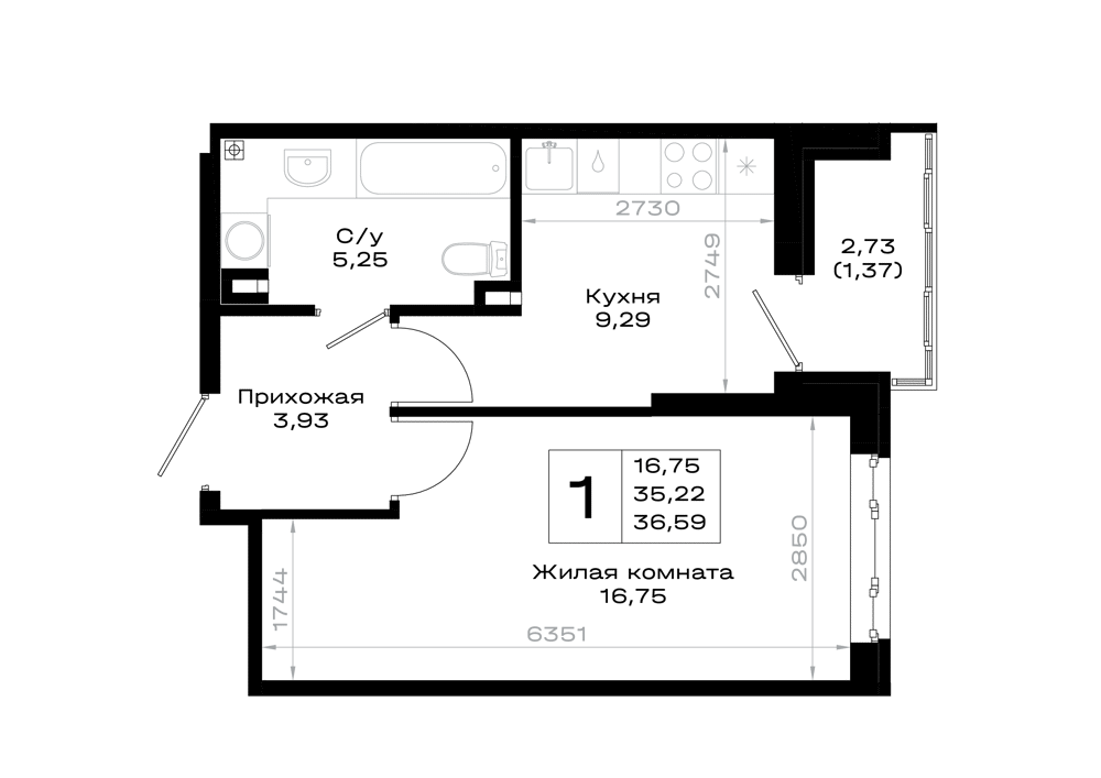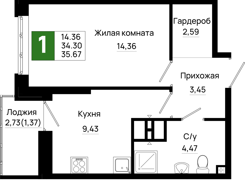 1-комнатная (35.67м2)