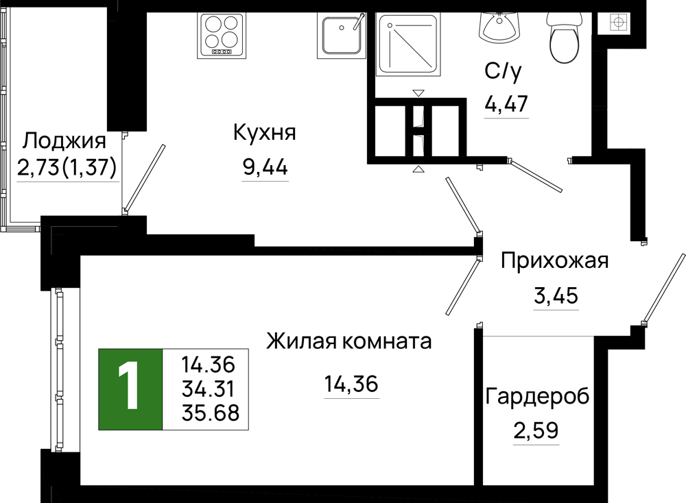 Однокомнатные квартиры в ЖК Октябрь Парк - страница 63