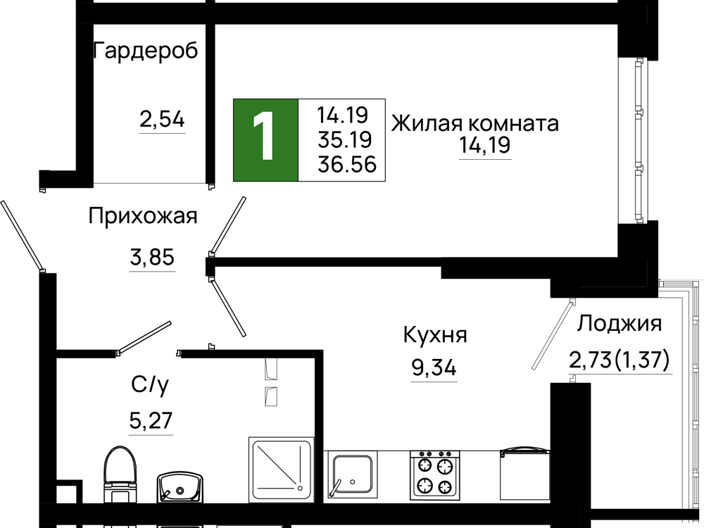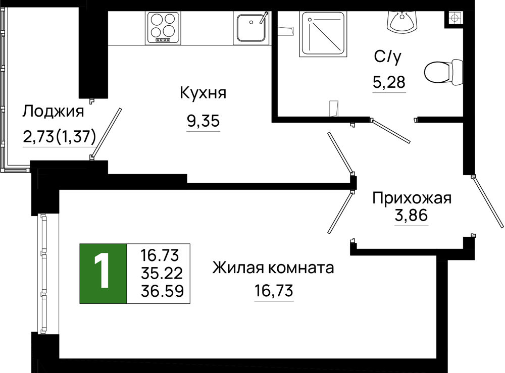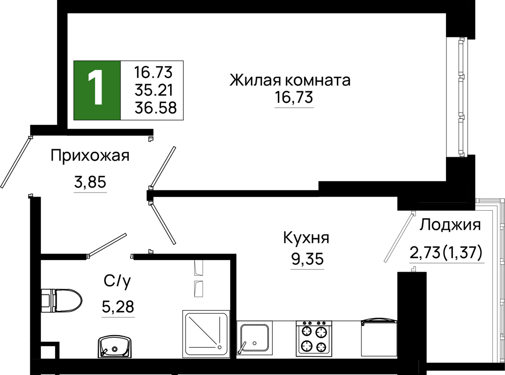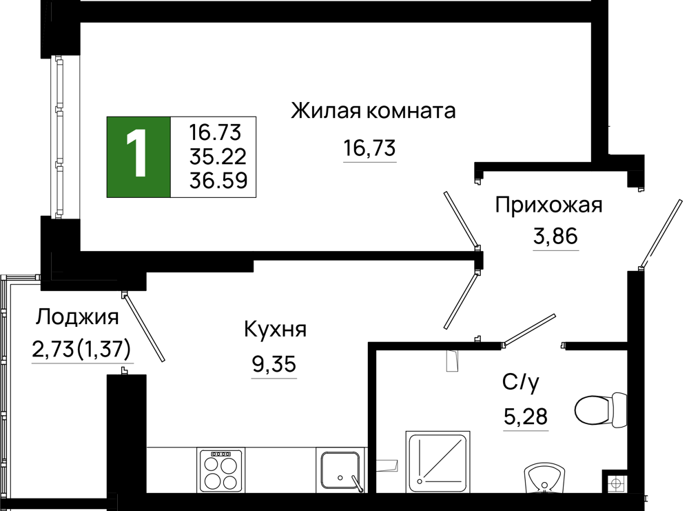Однокомнатные квартиры в ЖК Октябрь Парк - страница 73
