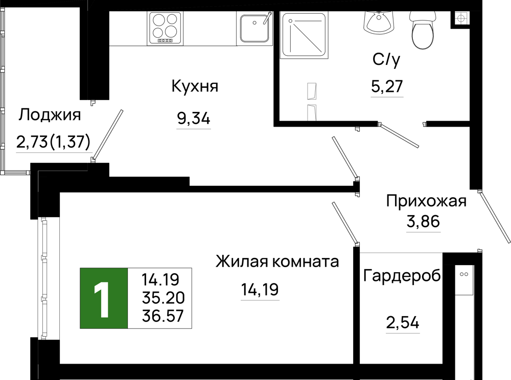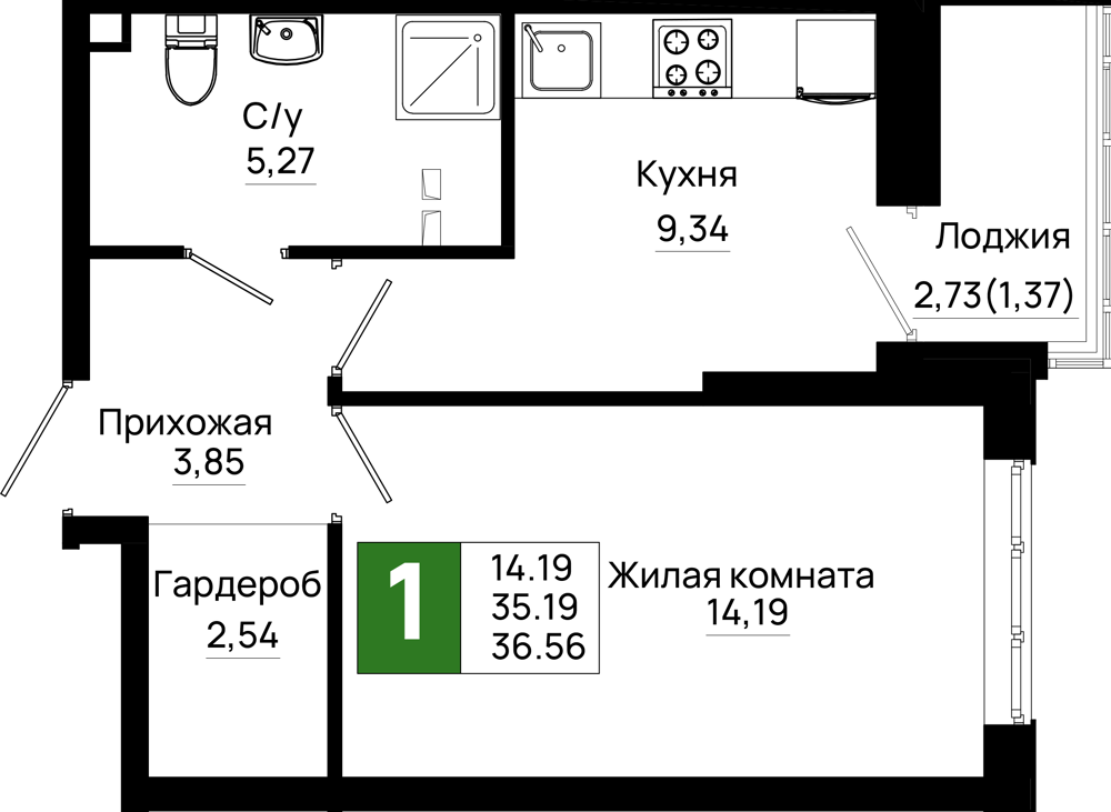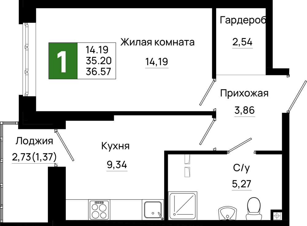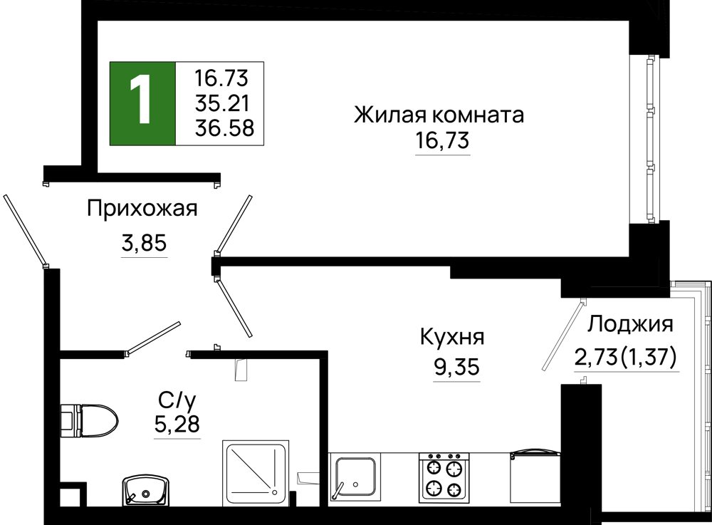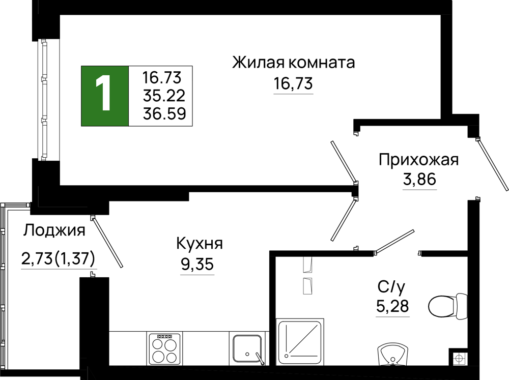 Однокомнатные квартиры в ЖК Октябрь Парк - страница 73