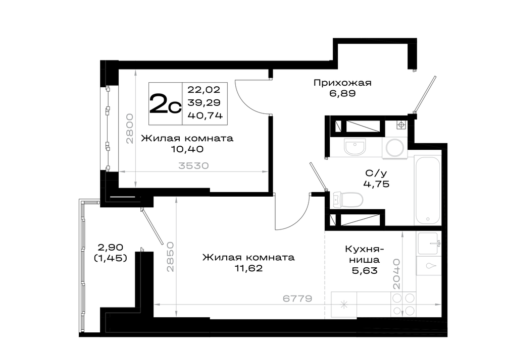 1-комнатная (40.74м2)