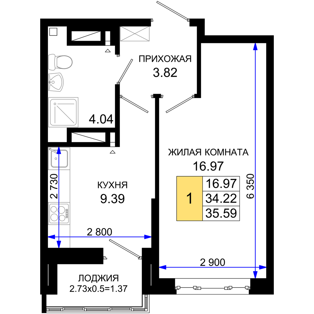 1-комнатная (35.59м2)