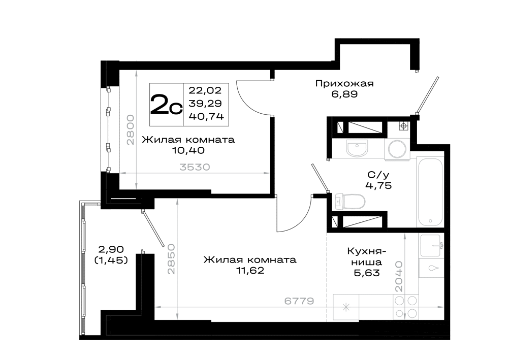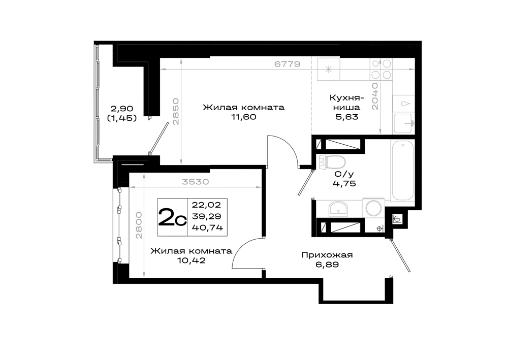1-комнатная (40.74м2)