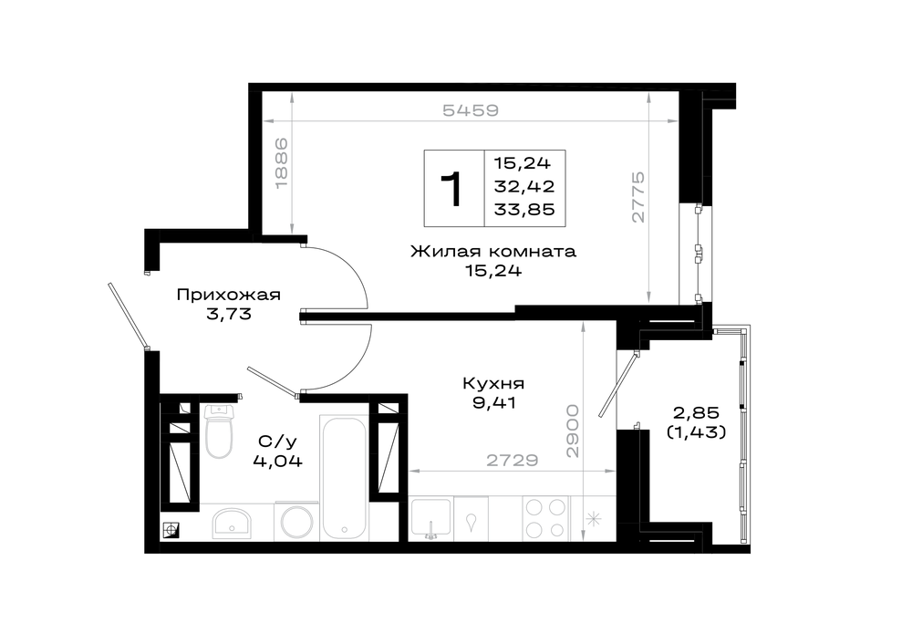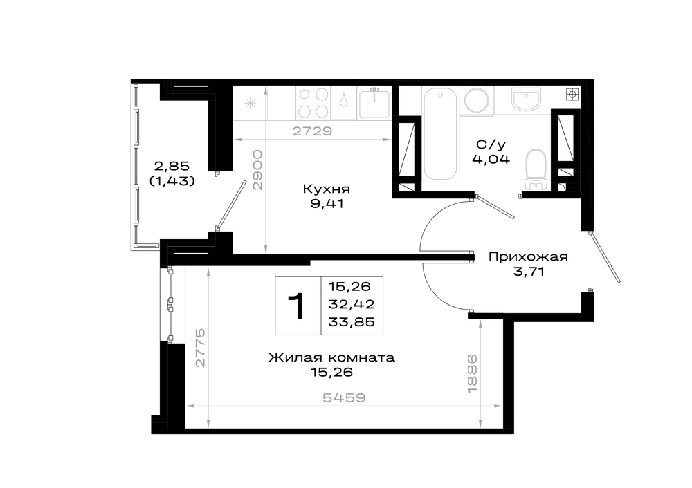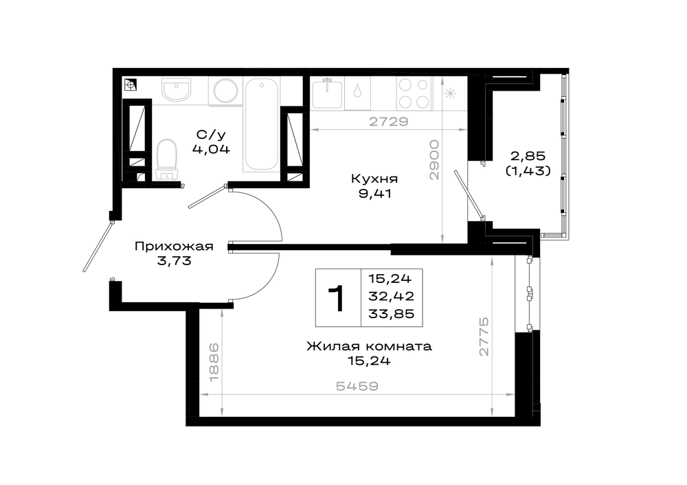 1-комнатная (33.85м2)