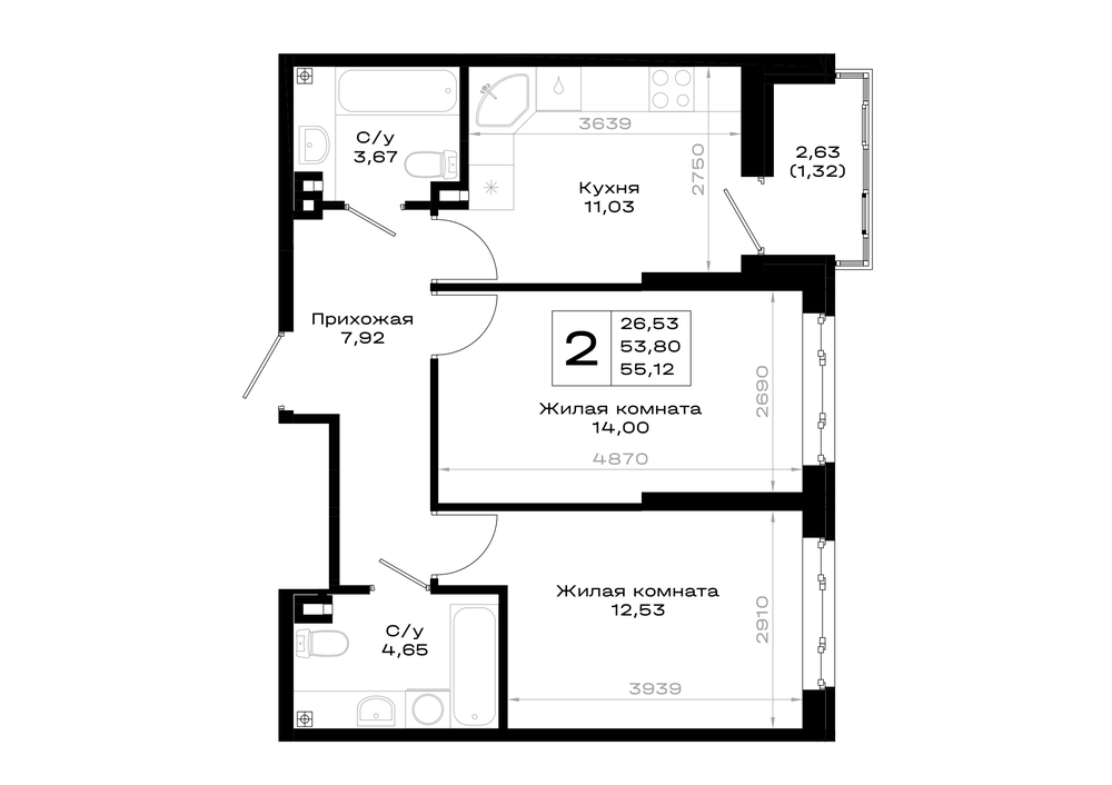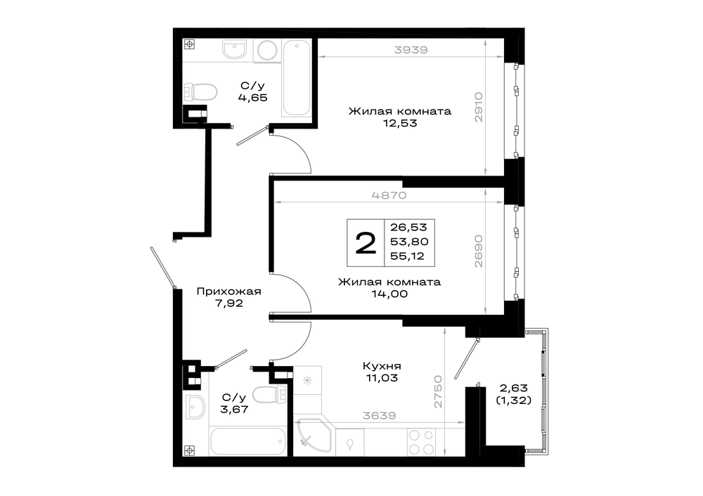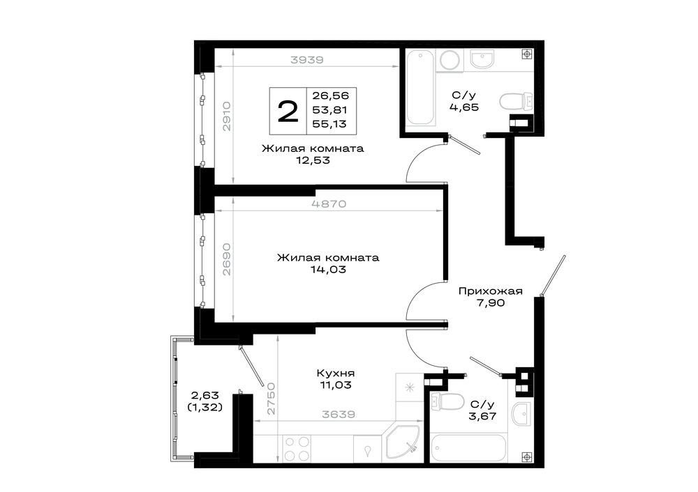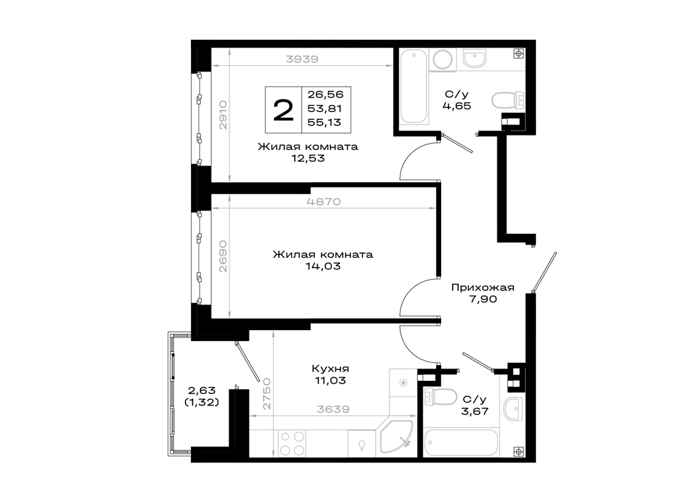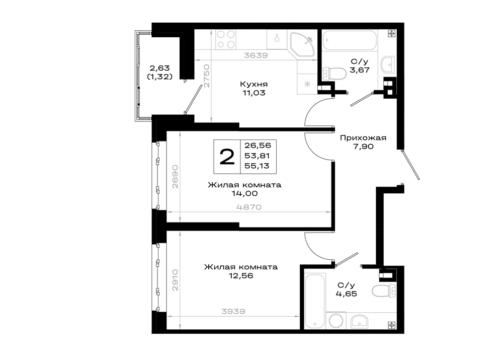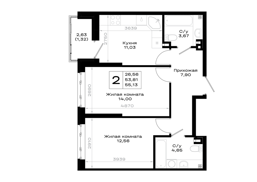 2-комнатная (55.13м2)