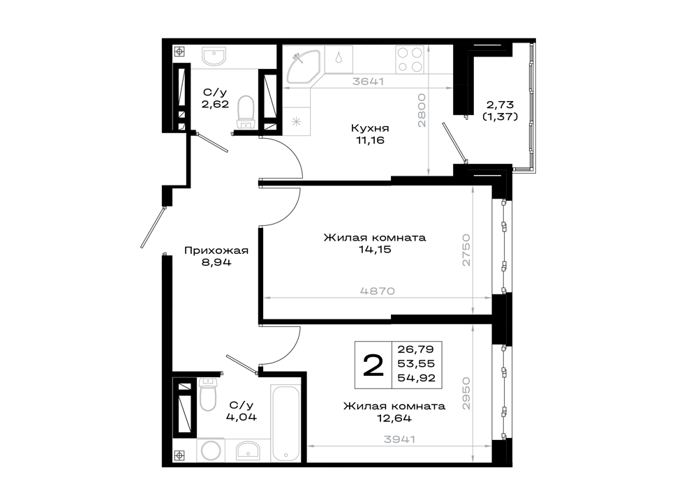 2-комнатная (54.92м2)