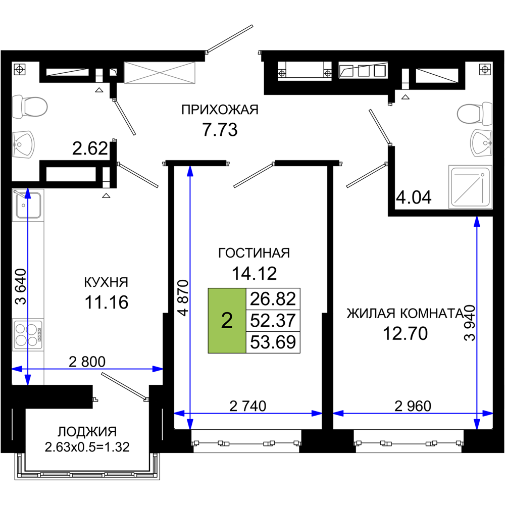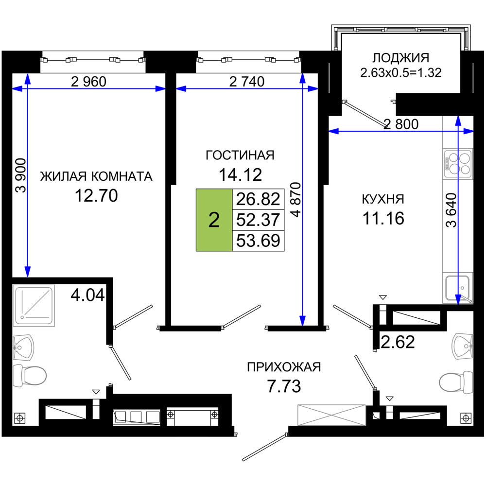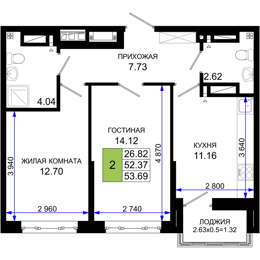 Двухкомнатные квартиры в ЖК Октябрь Парк
