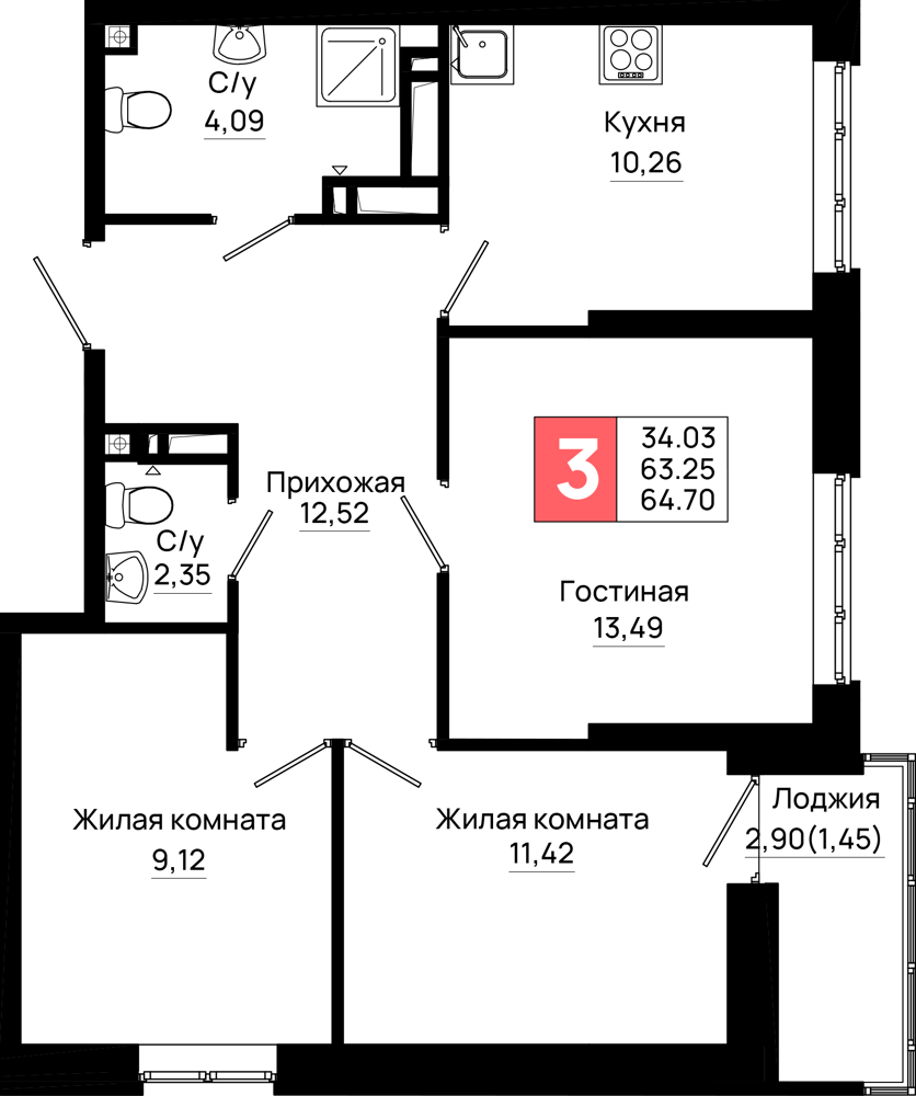 Трехкомнатные квартиры в ЖК Октябрь Парк - страница 14