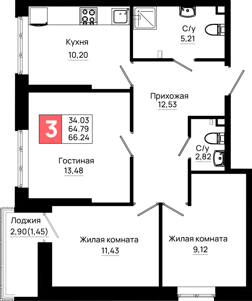 3-комнатная (66.24м2)