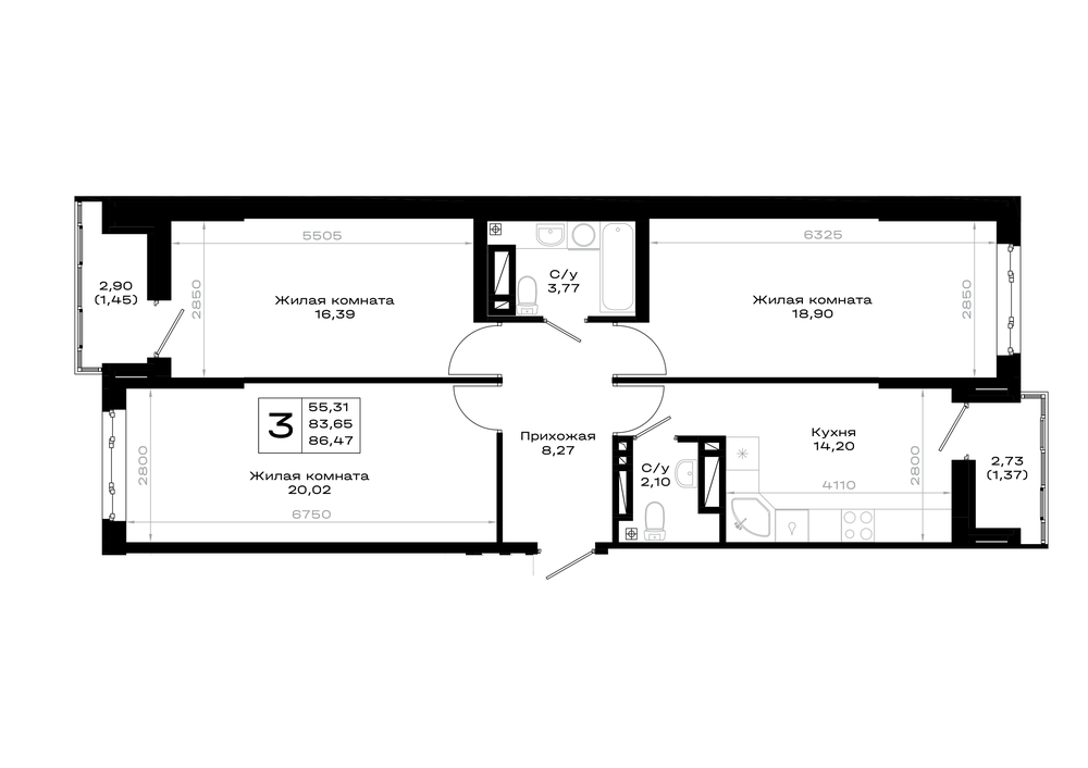 3-комнатная (86.47м2)