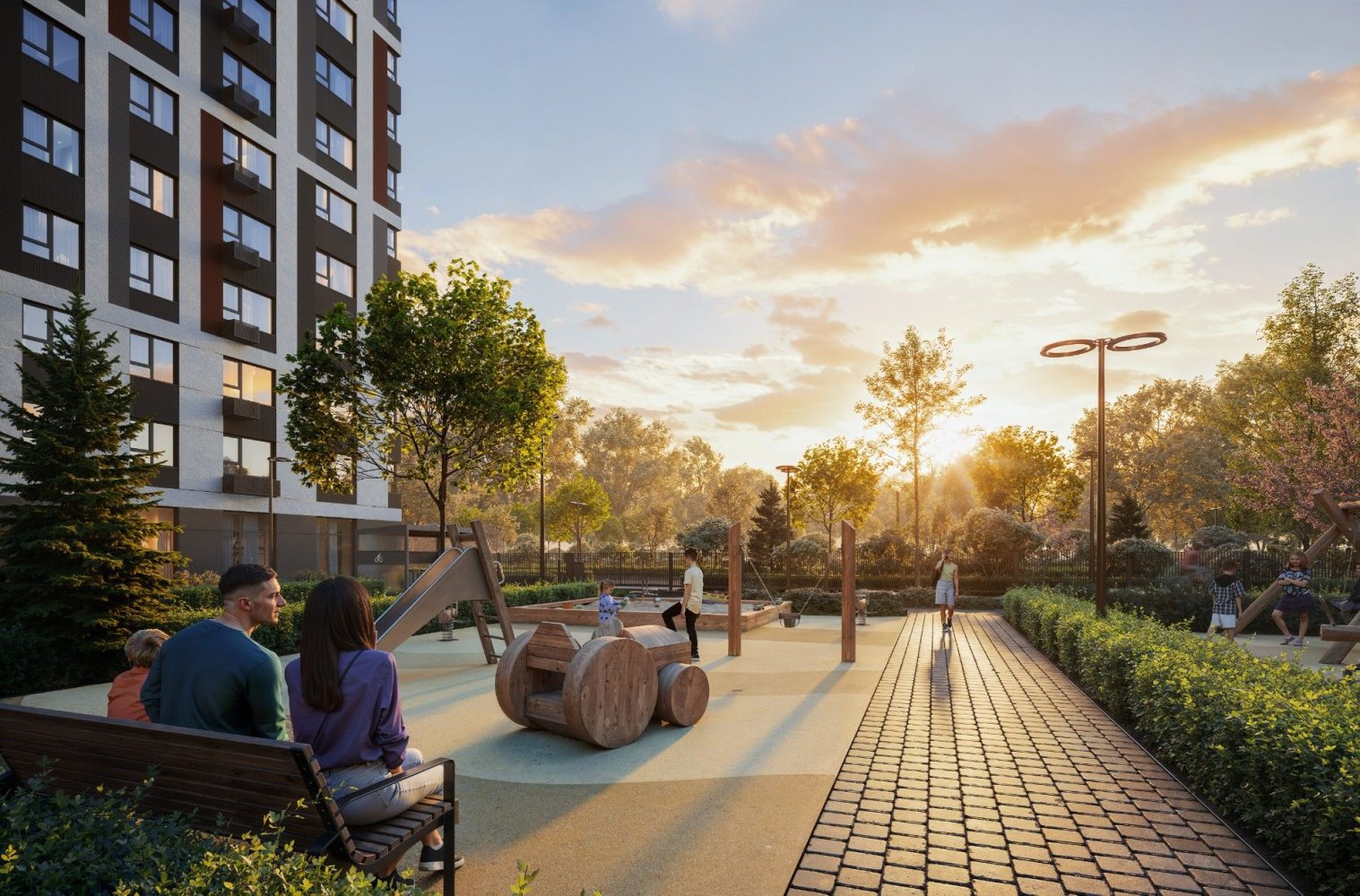 Опции, которые предлагает застройщик для проекта ЖК Октябрьский: гостевая парковка, детский сад, школа, коммерческие помещения на первом этаже, детские и спортивные площадки, бассейн, закрытый двор без машин, видеонаблюдение, контроль доступа.
