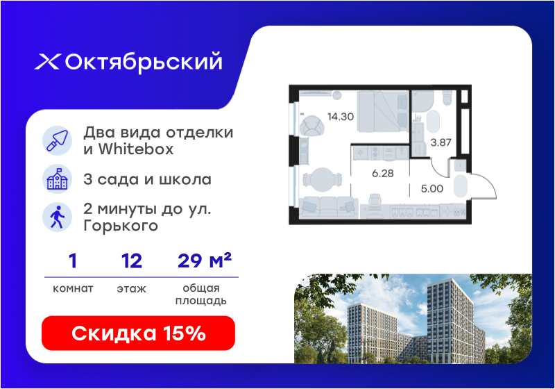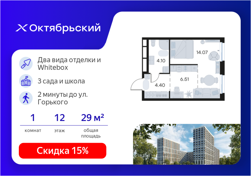 ЖК Октябрьский - современный жилищный комплекс, который будет построен в 4 квартале 2027 г. и относится к комфорт-классу. Имеет удобное расположение: Владимирская область, город Владимир, Октябрьский район.