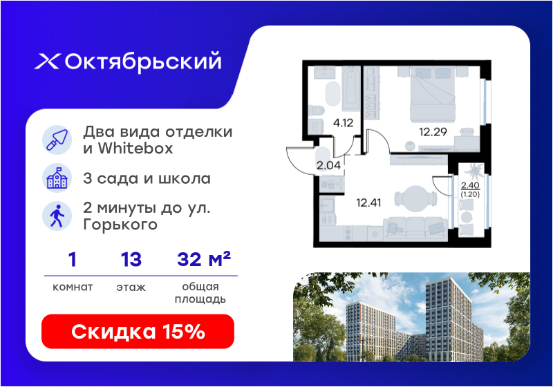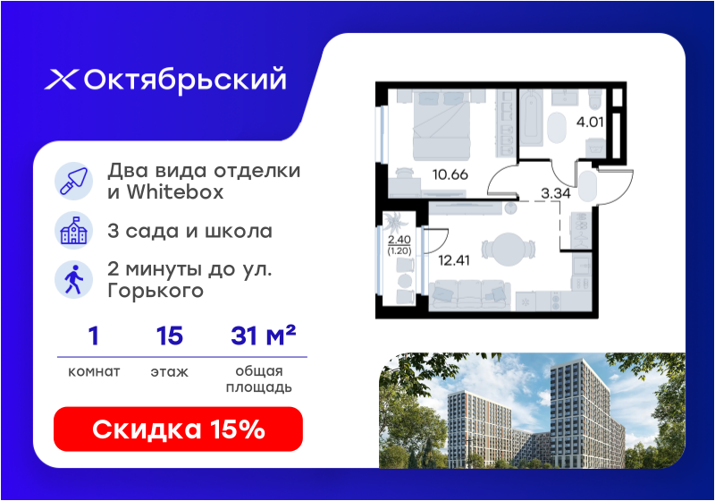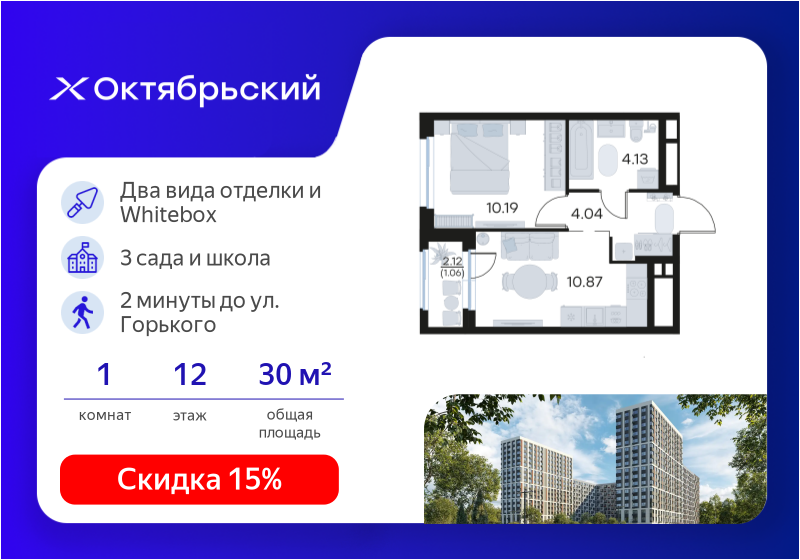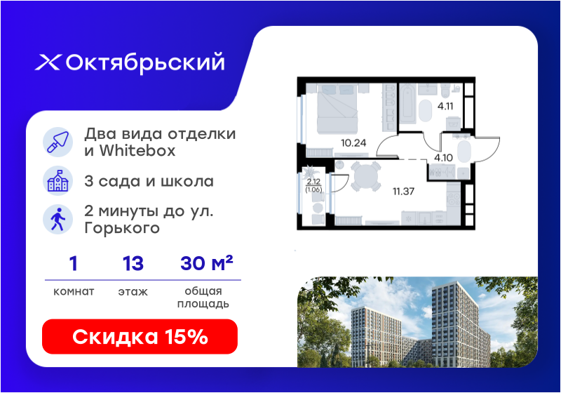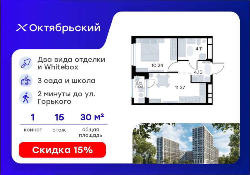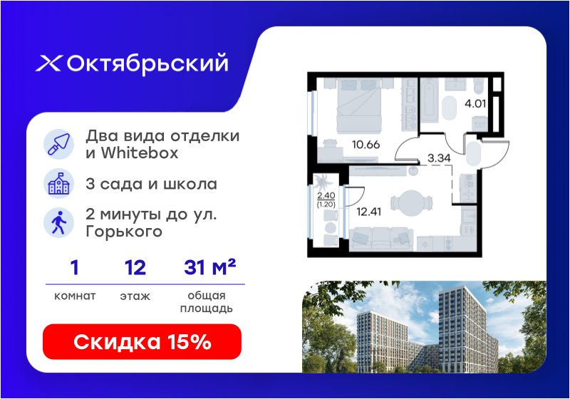 ЖК Октябрьский - современный жилищный комплекс, который будет построен в 4 квартале 2027 г. и относится к комфорт-классу. Имеет удобное расположение: Владимирская область, город Владимир, Октябрьский район.