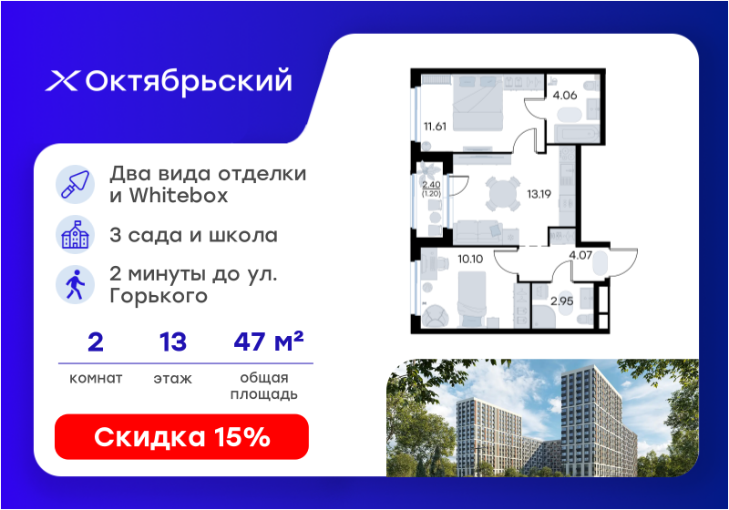 ЖК Октябрьский - современный жилищный комплекс, который будет построен в 4 квартале 2027 г. и относится к комфорт-классу. Имеет удобное расположение: Владимирская область, город Владимир, Октябрьский район.