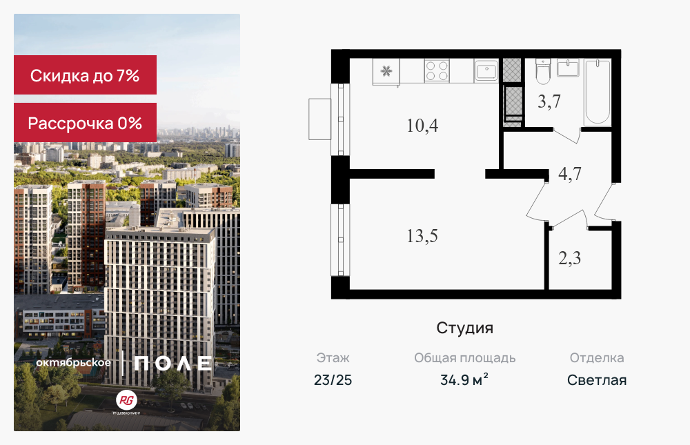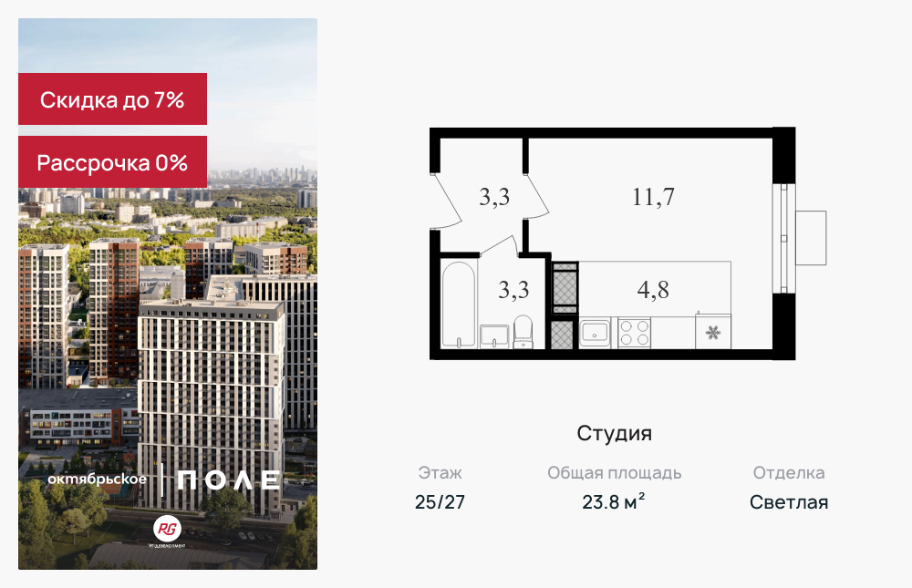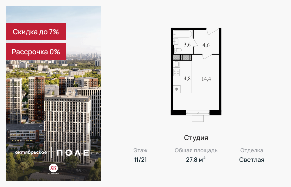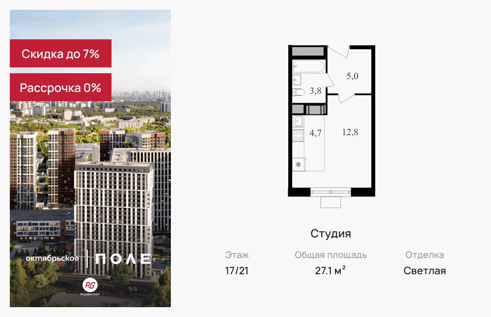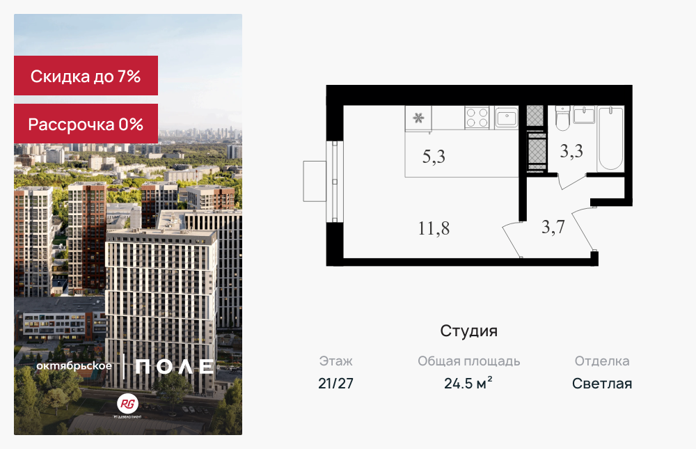 Компания «РГ-Девелопмент» была создана в 2013 году. Сегодня – динамично развивающаяся девелоперская компания, в портфеле которой сегодня более 1,5 млн м2 недвижимости. За стабильные темпы строительства, строгое соблюдение сроков и качественные характеристики объектов компания «РГ - Девелопмент» неоднократно удостаивалась наград в профессиональных конкурсах и премиях. Компания входит в ТОП-10 застройщиков в Москве по вводу жилья и в ТОП-20 крупнейших застройщиков России по версии Forbes. Мосгосэкспертиза присвоила показатель надежности А2 (очень высокий уровень надежности – риск незначительный). Агентство «Национальные кредитные рейтинги» присвоило компании «РГ-Девелопмент» кредитный рейтинг А- со стабильным прогнозом. Стратегия «РГ - Девелопмент» — приобретение качественных строительных площадок под девелоперские проекты, максимально эффективная реализация их потенциала для создания лучших объектов на рынке, отвечающих самым современным требованиям к материалам и технологиям строительства. Компания активно участвует в программах, реализуемых Правительством Москвы, в первую очередь в сфере улучшения экологии и создания комфортной городской среды.