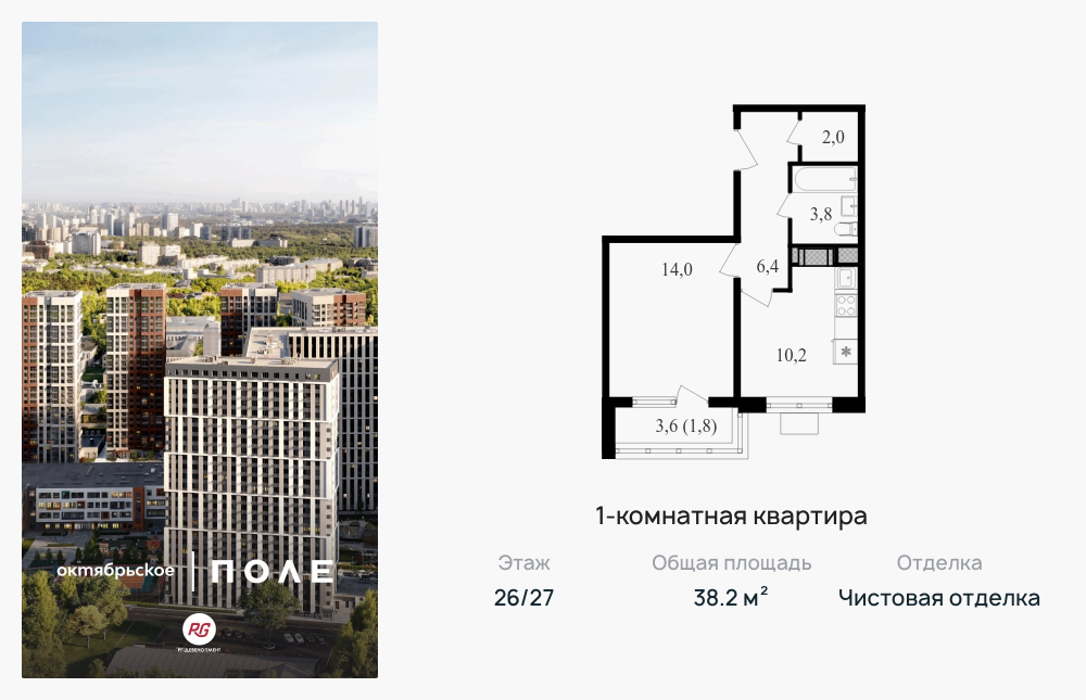 Однокомнатные квартиры в ЖК «Октябрьское поле»