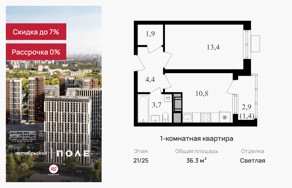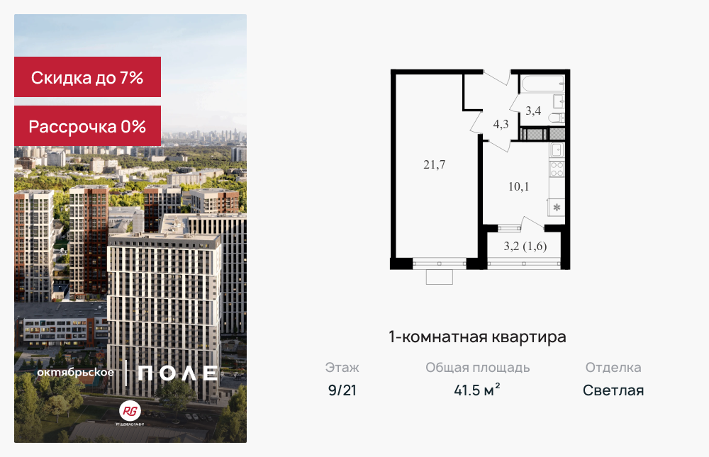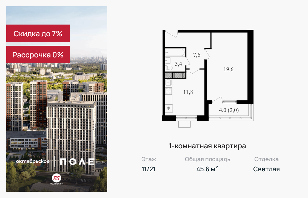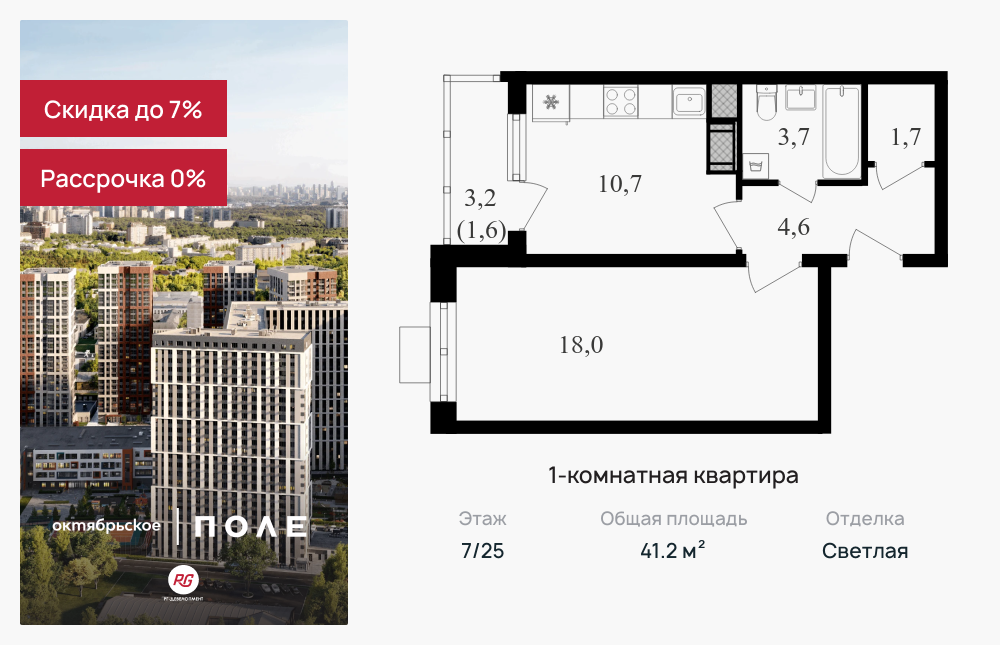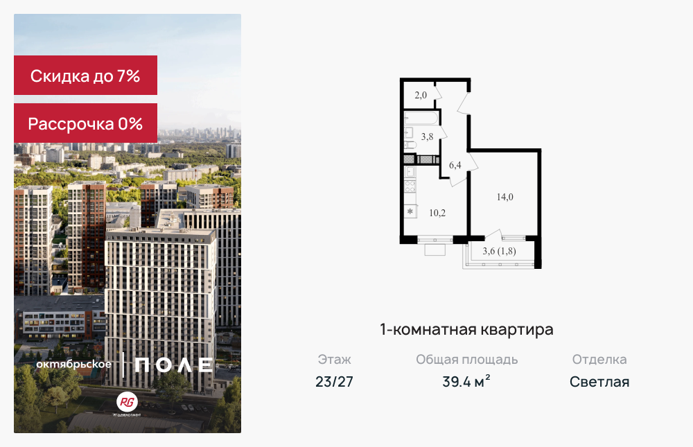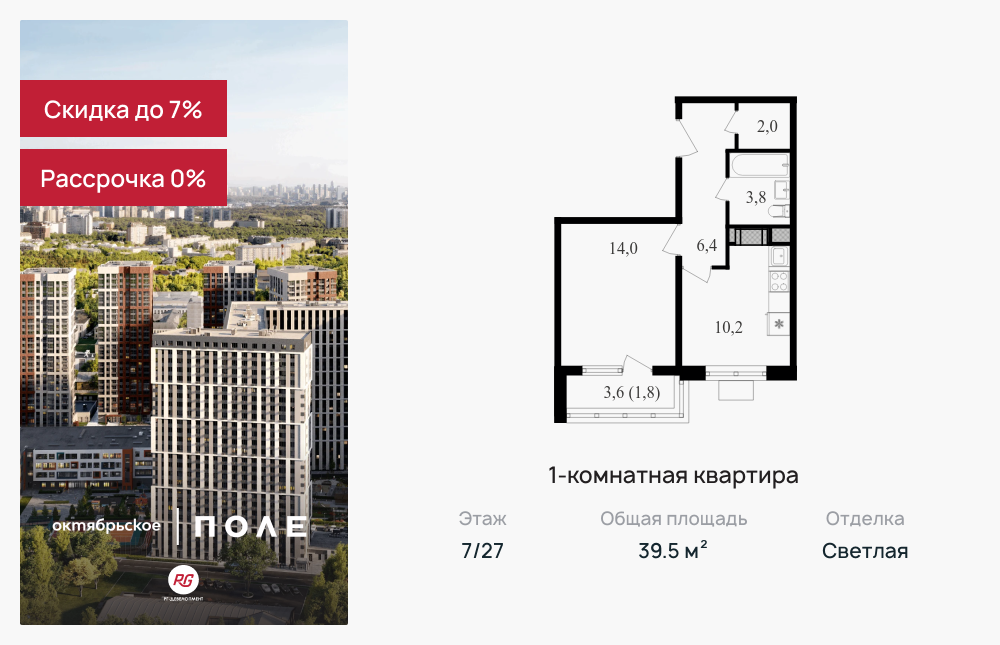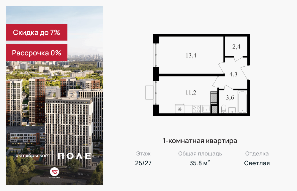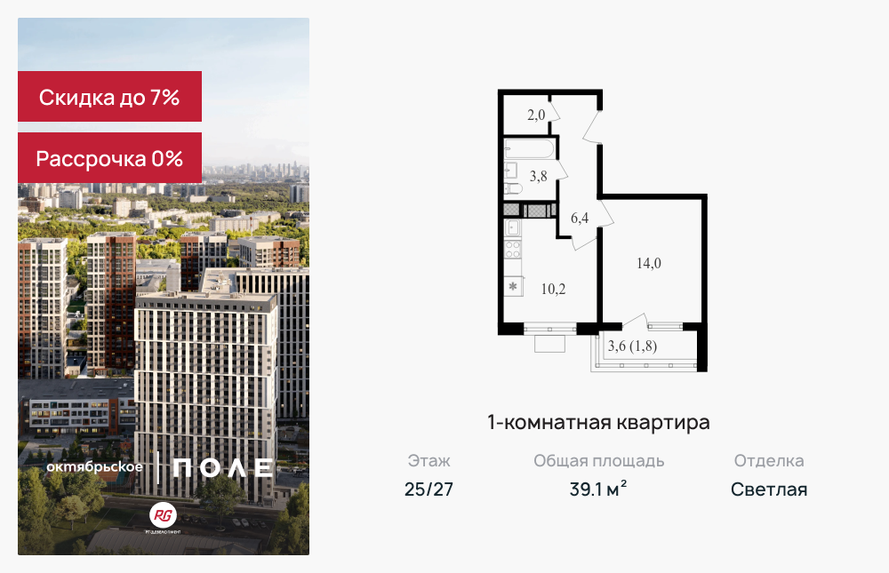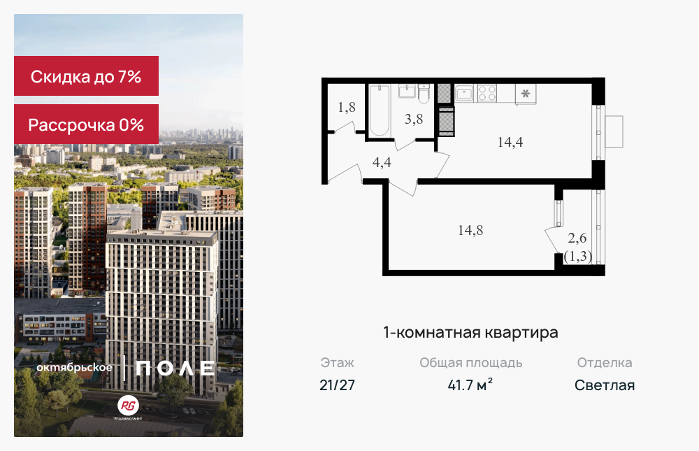 Однокомнатные квартиры в ЖК «Октябрьское поле»