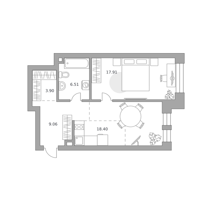 Евро 1-комнатная (42.99м2)
