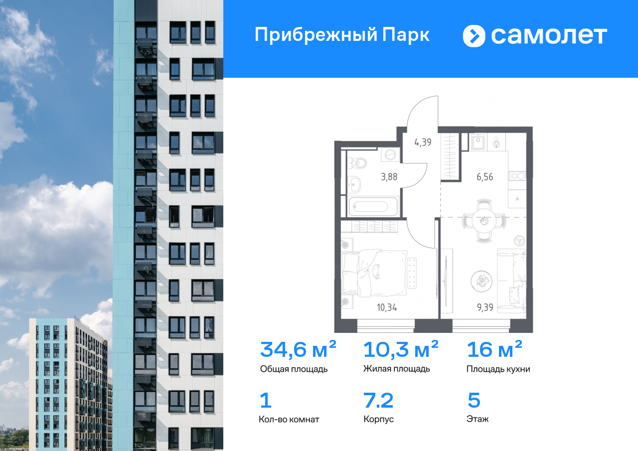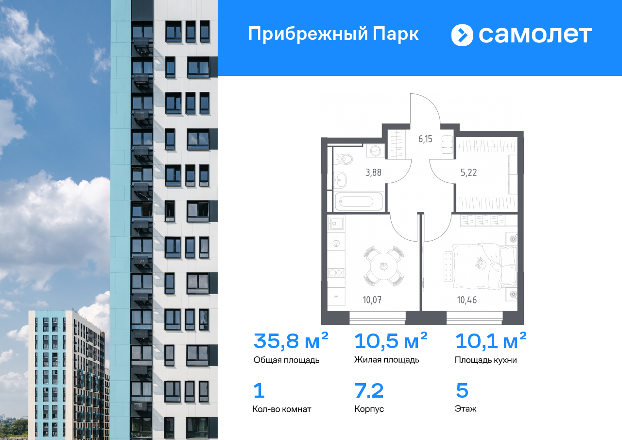 Однокомнатные квартиры в ЖК «Прибрежный Парк»