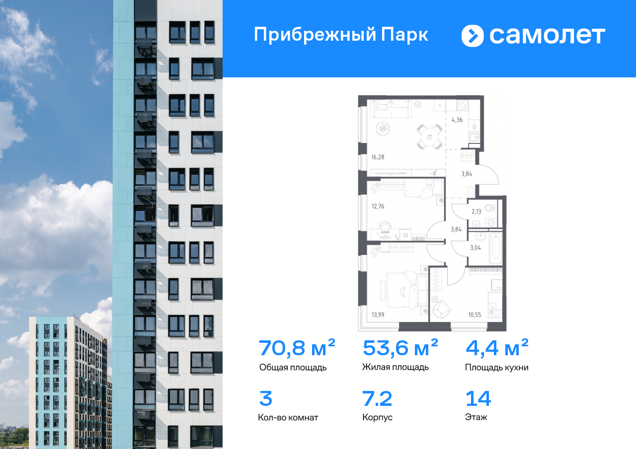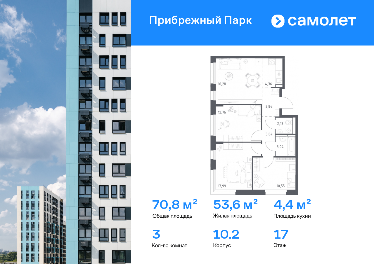 Трехкомнатные квартиры в ЖК «Прибрежный Парк»