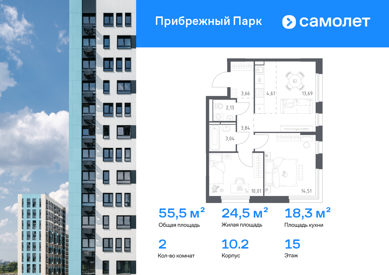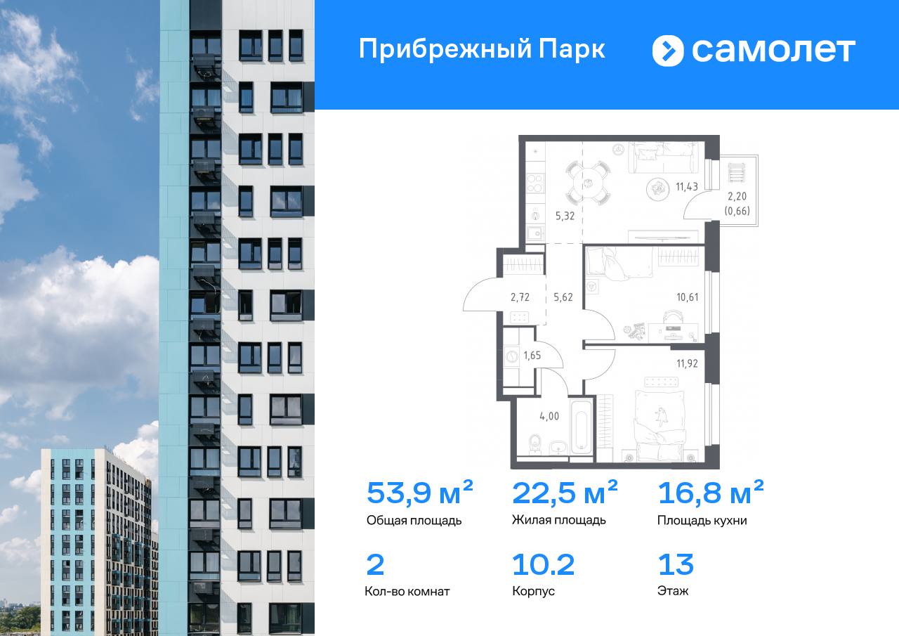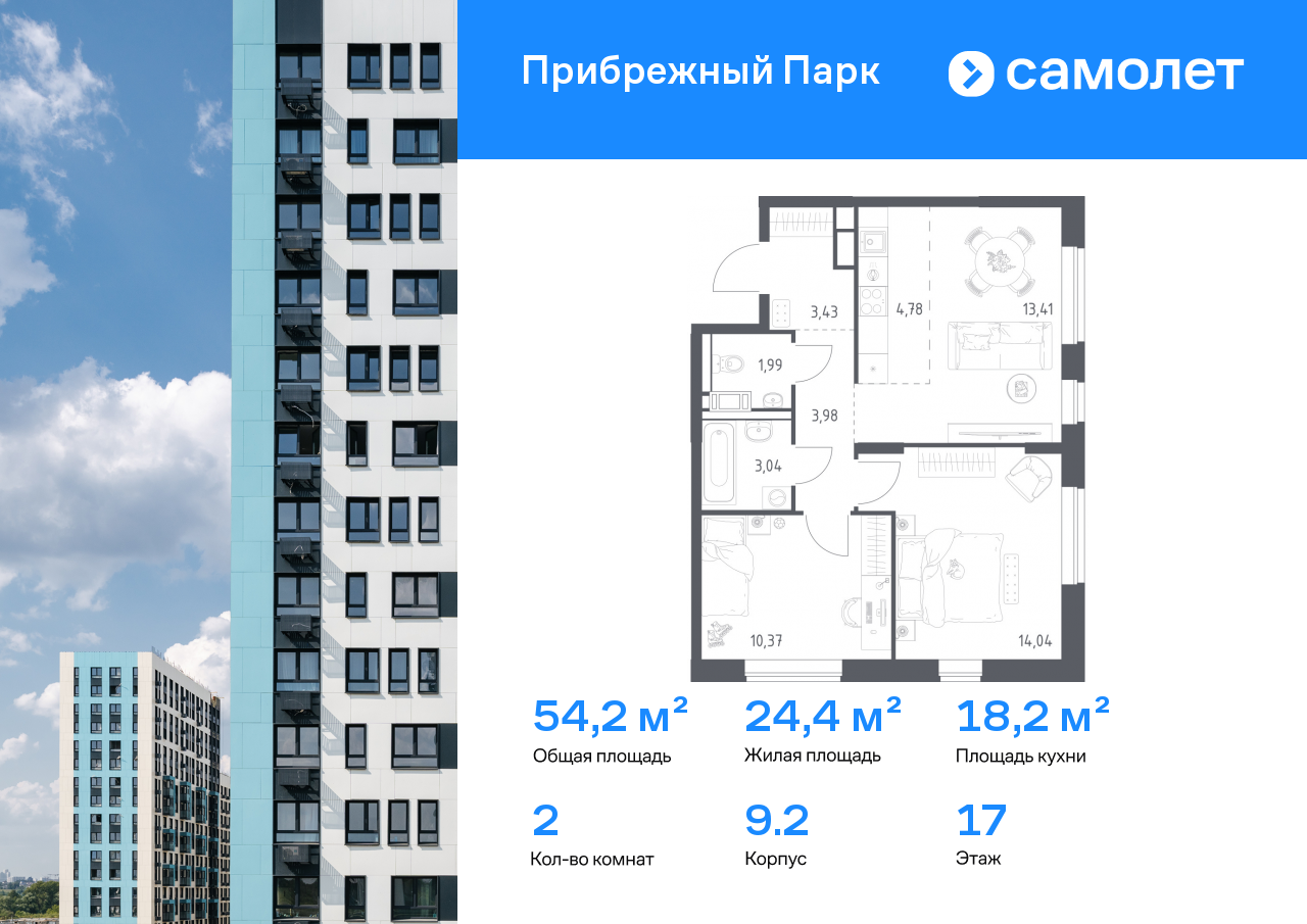 Евро двухкомнатные квартиры в ЖК «Прибрежный Парк»