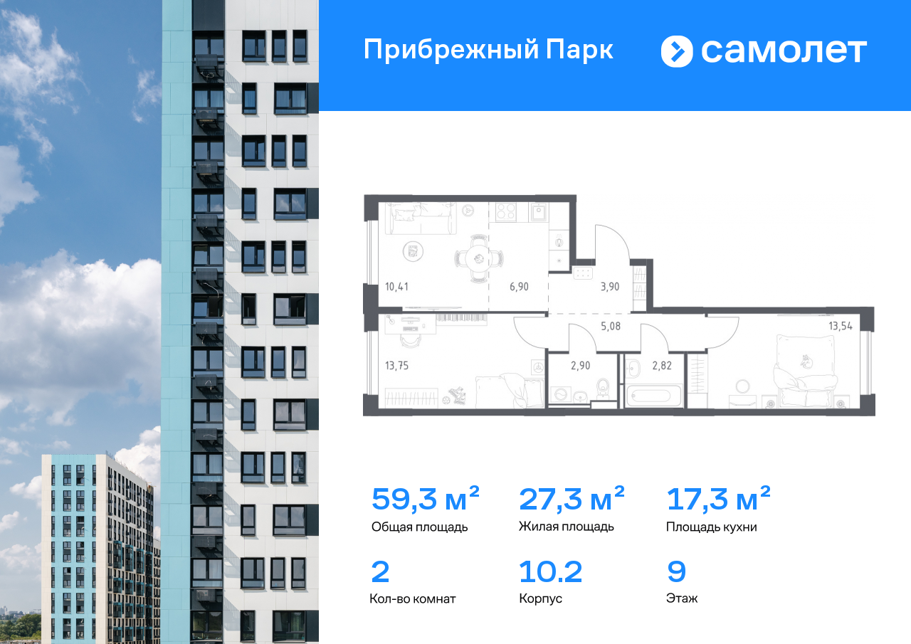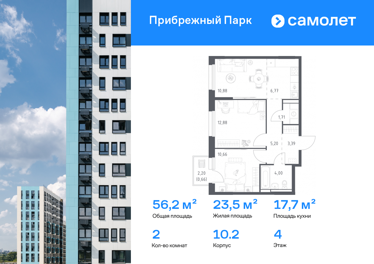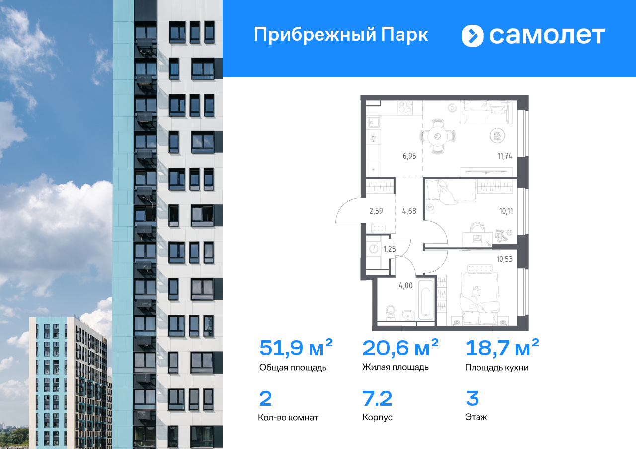 Евро двухкомнатные квартиры в ЖК «Прибрежный Парк»