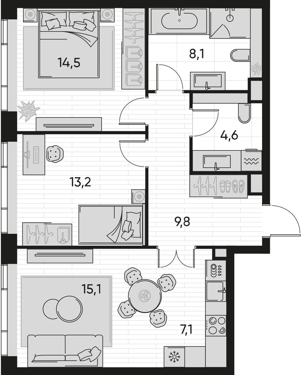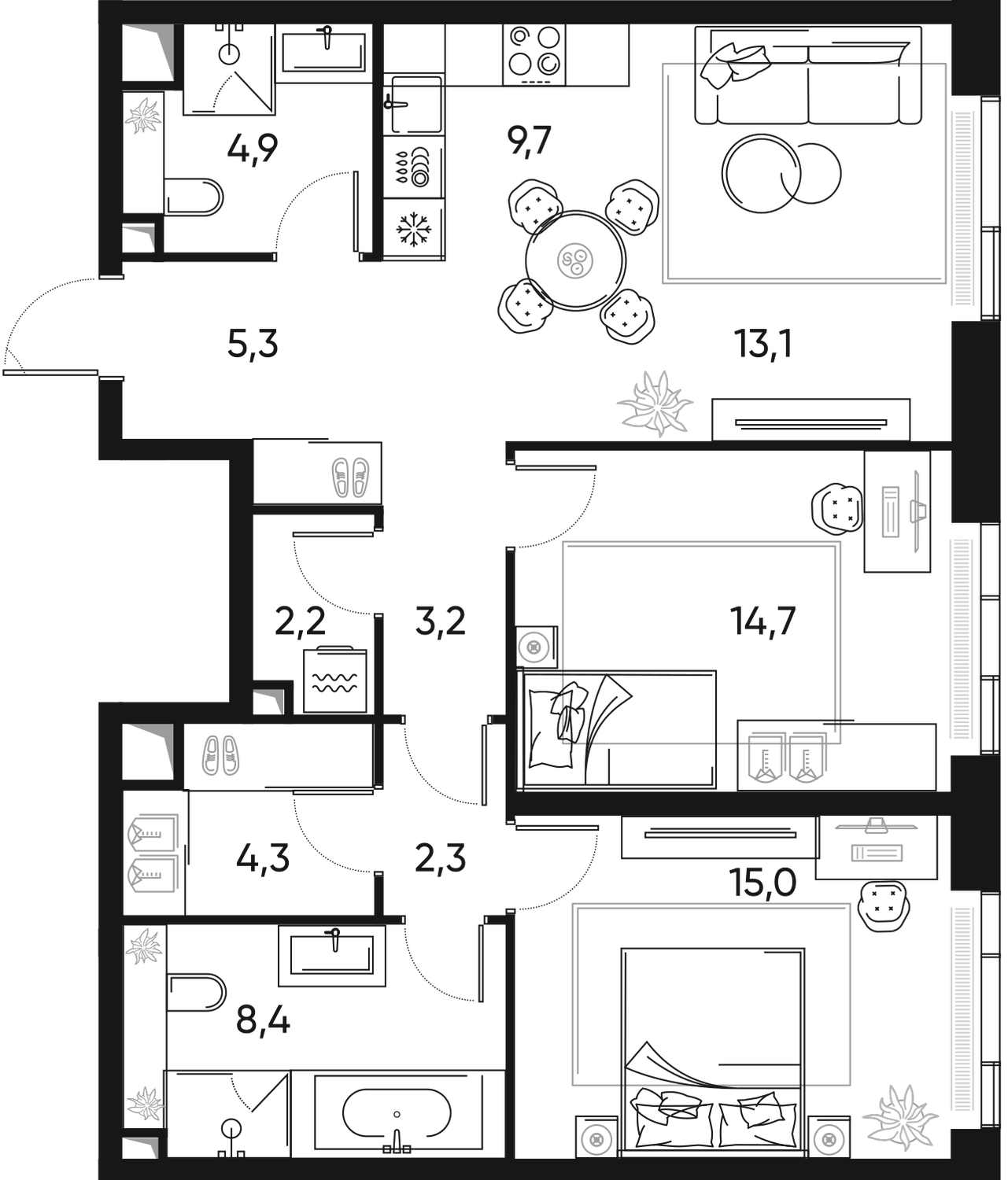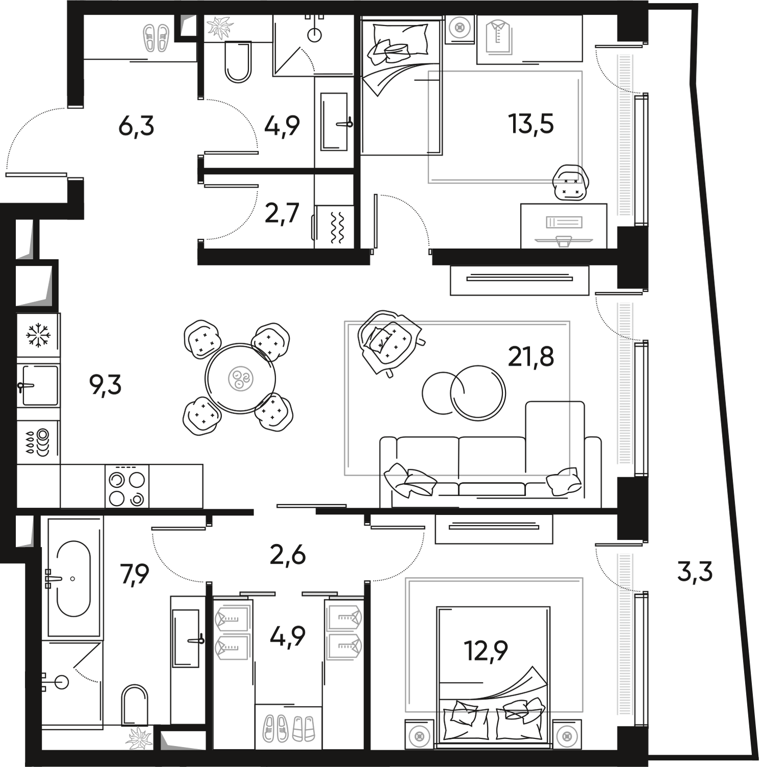 Трехкомнатные квартиры в PRIDE (Прайд)