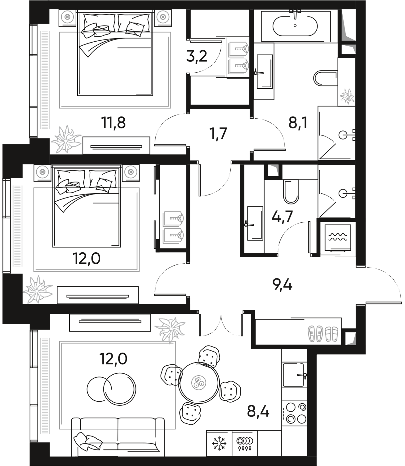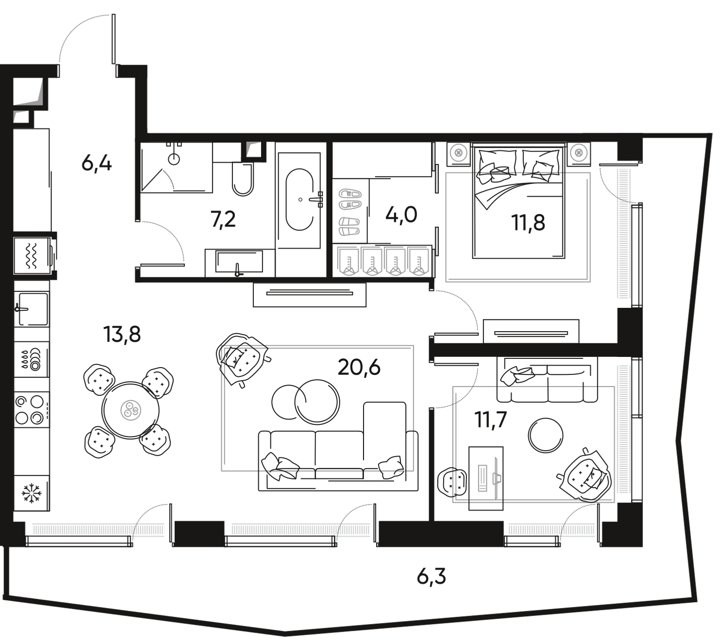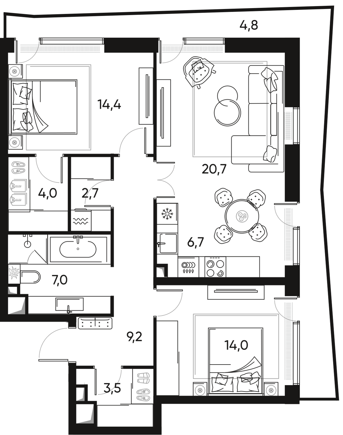 Трехкомнатные квартиры в PRIDE (Прайд)