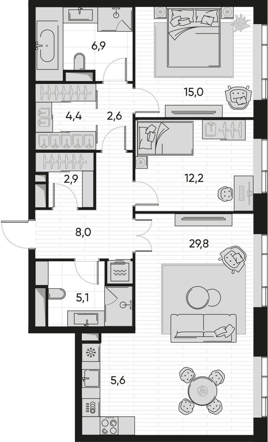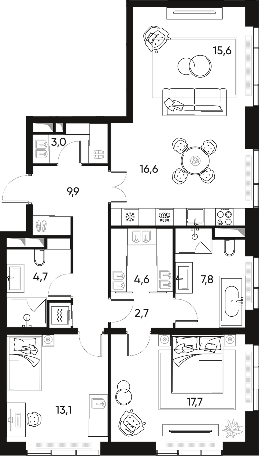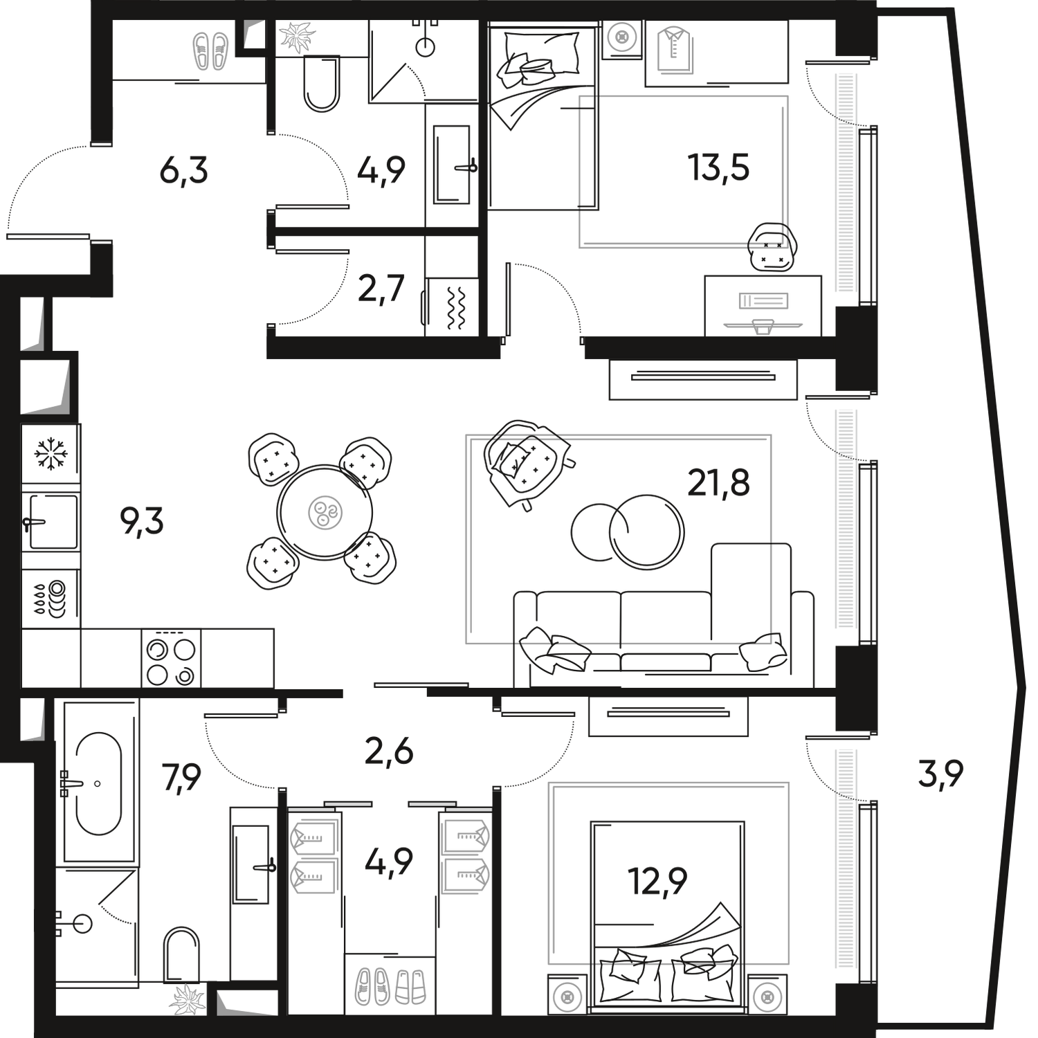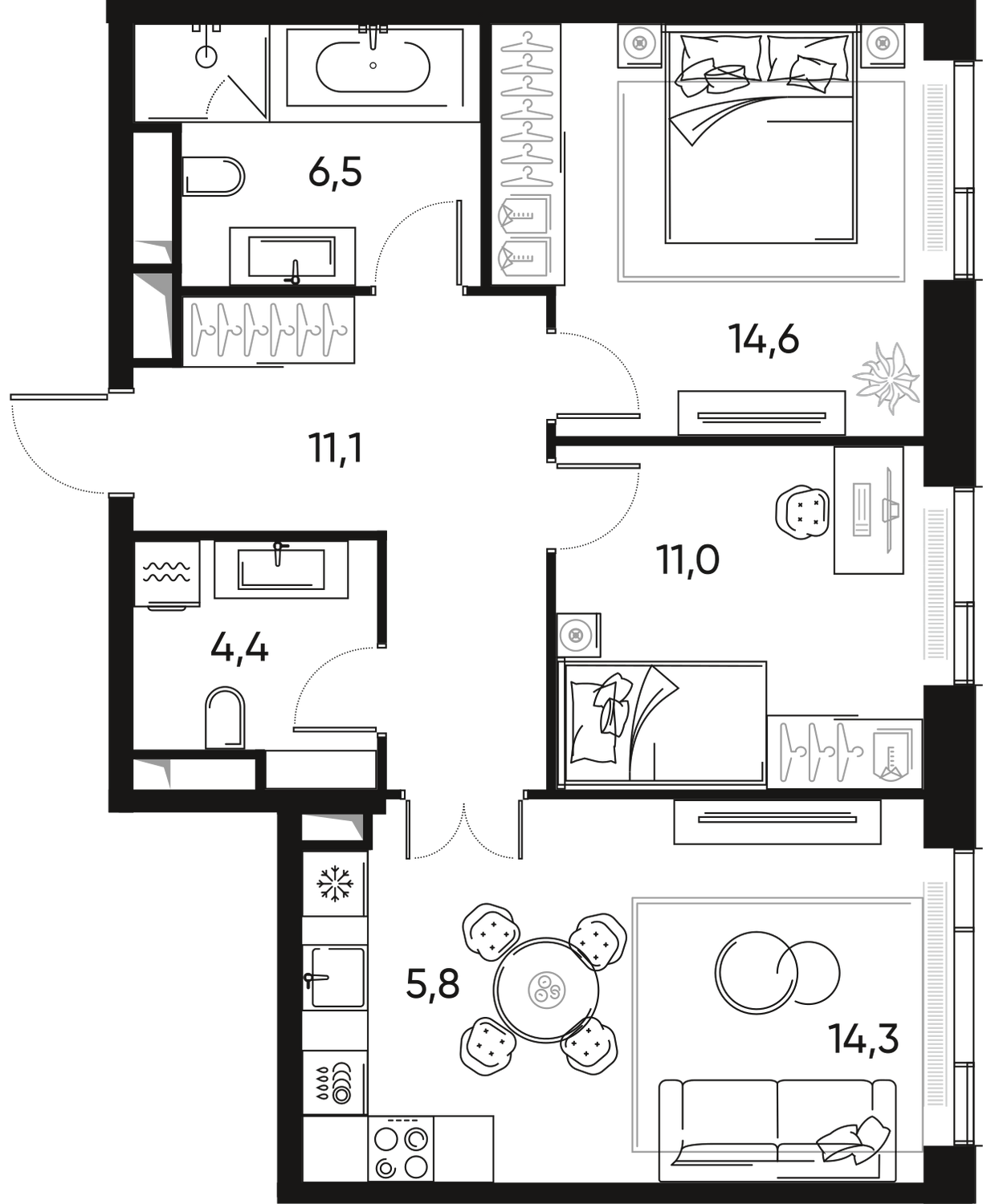Трехкомнатные квартиры в PRIDE (Прайд)