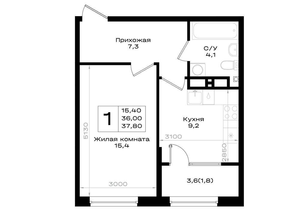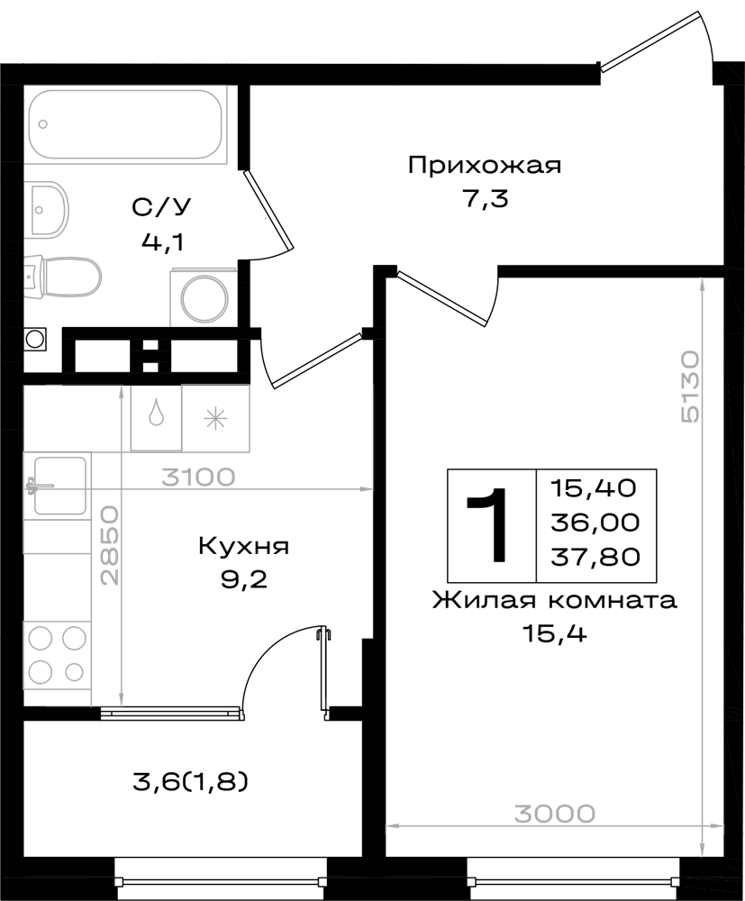 1-комнатная (37.8м2)