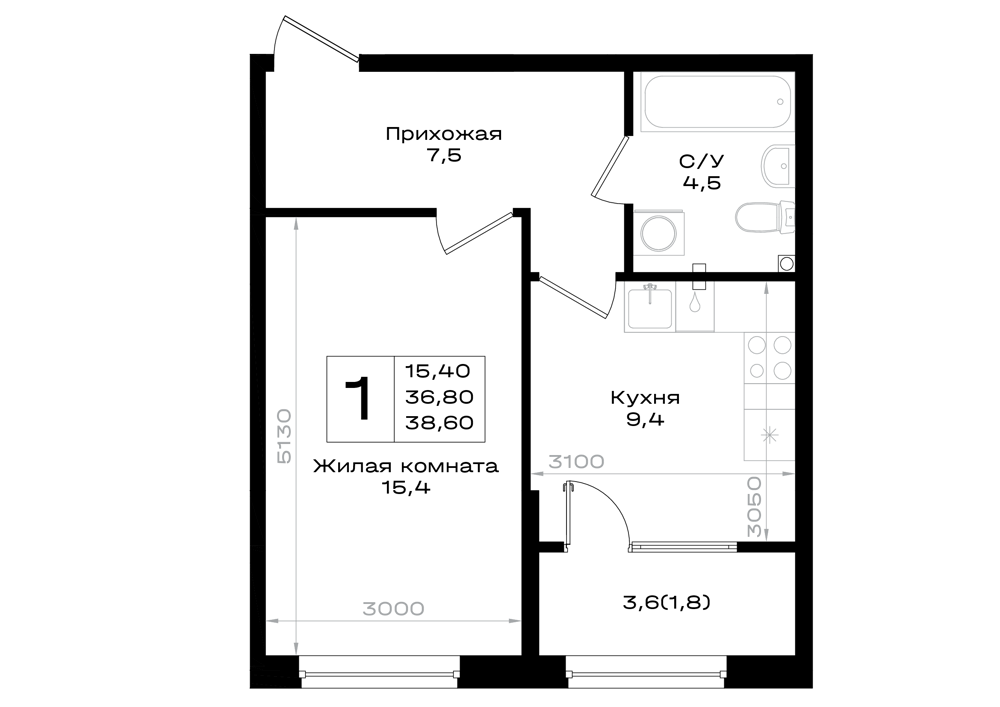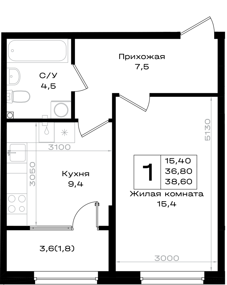 1-комнатная (38.6м2)