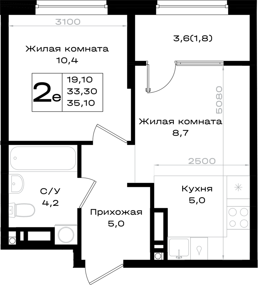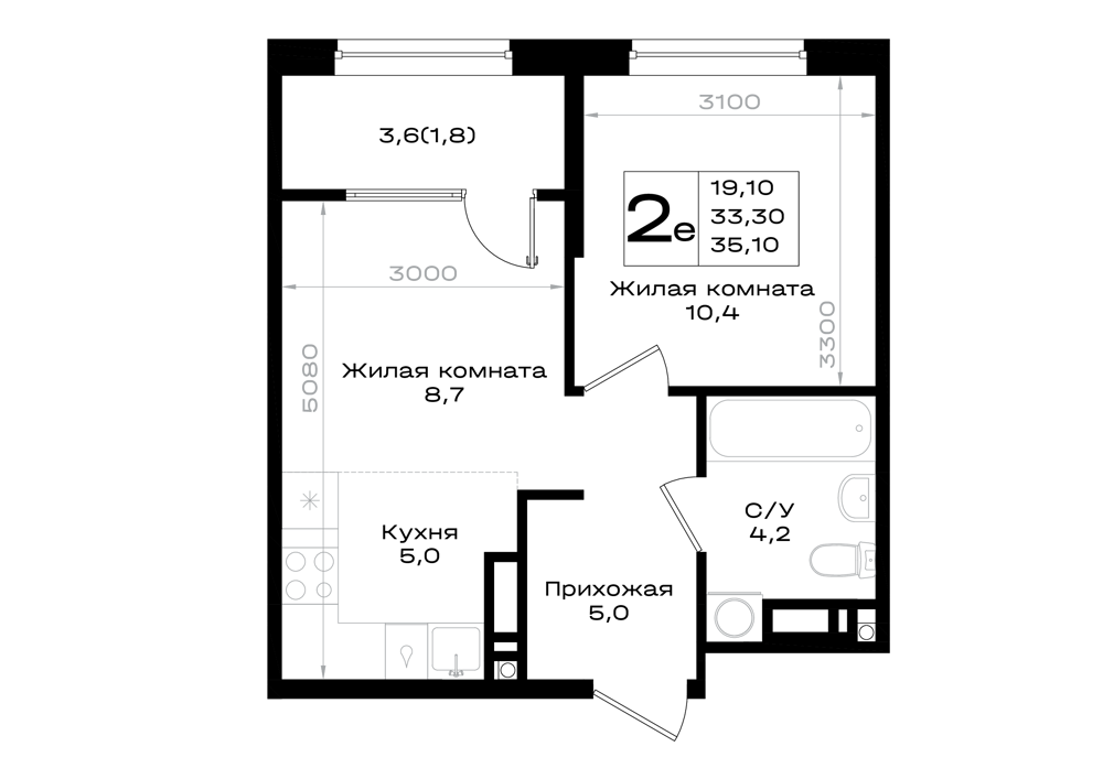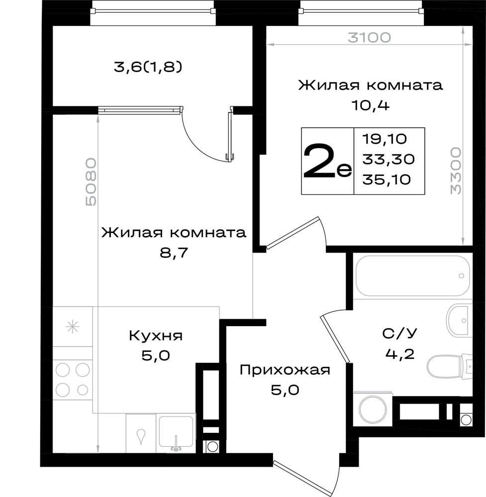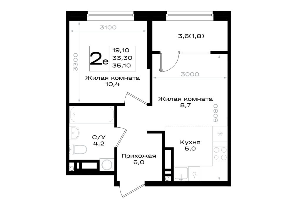 2-комнатная (35.1м2)