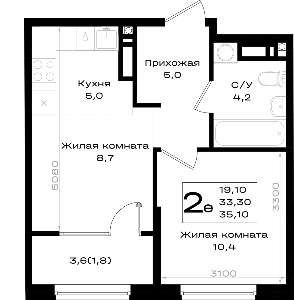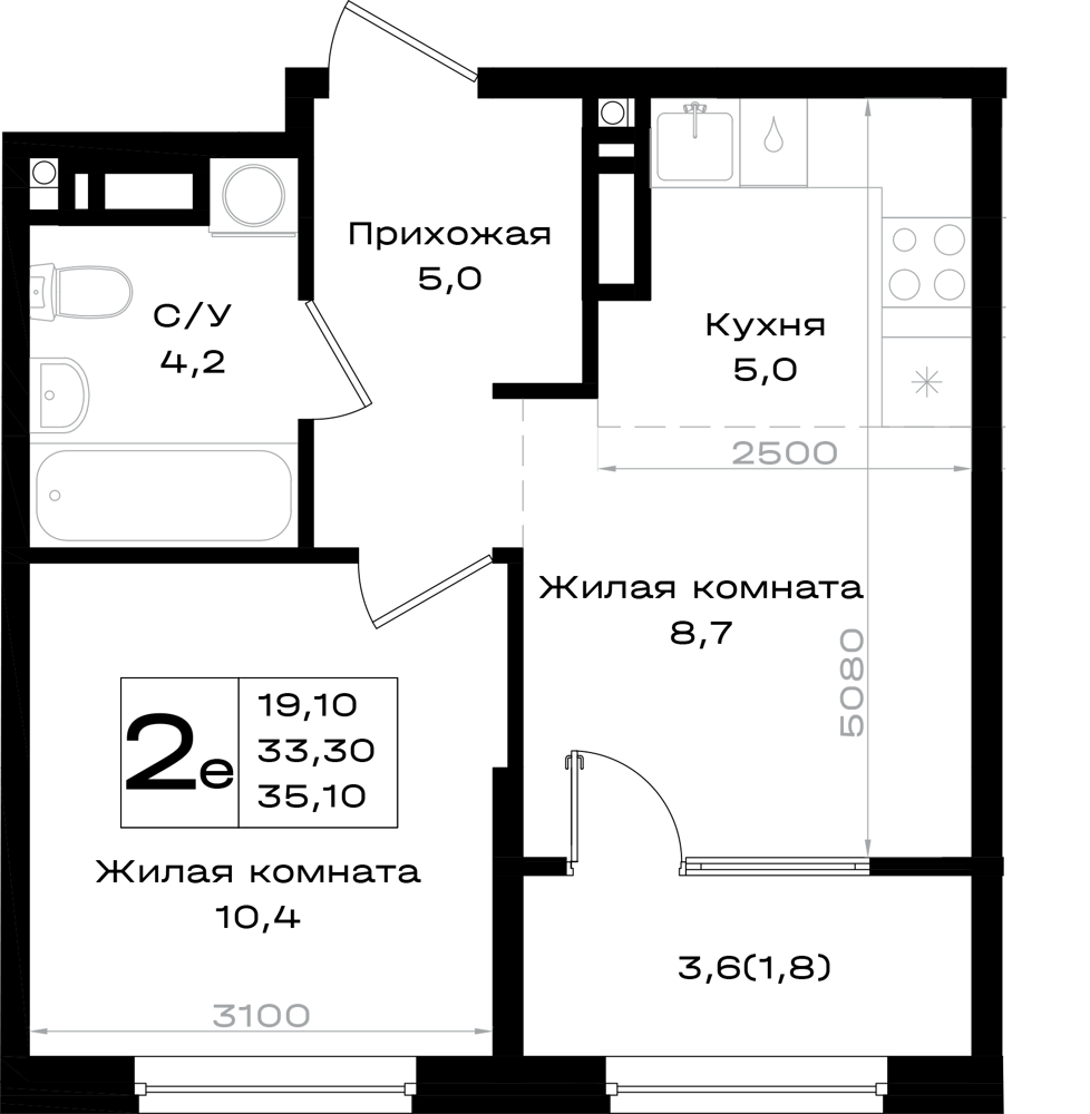 2-комнатная (35.1м2)