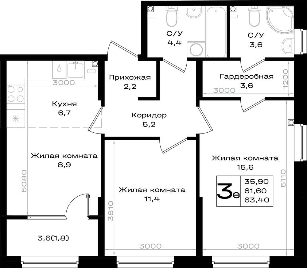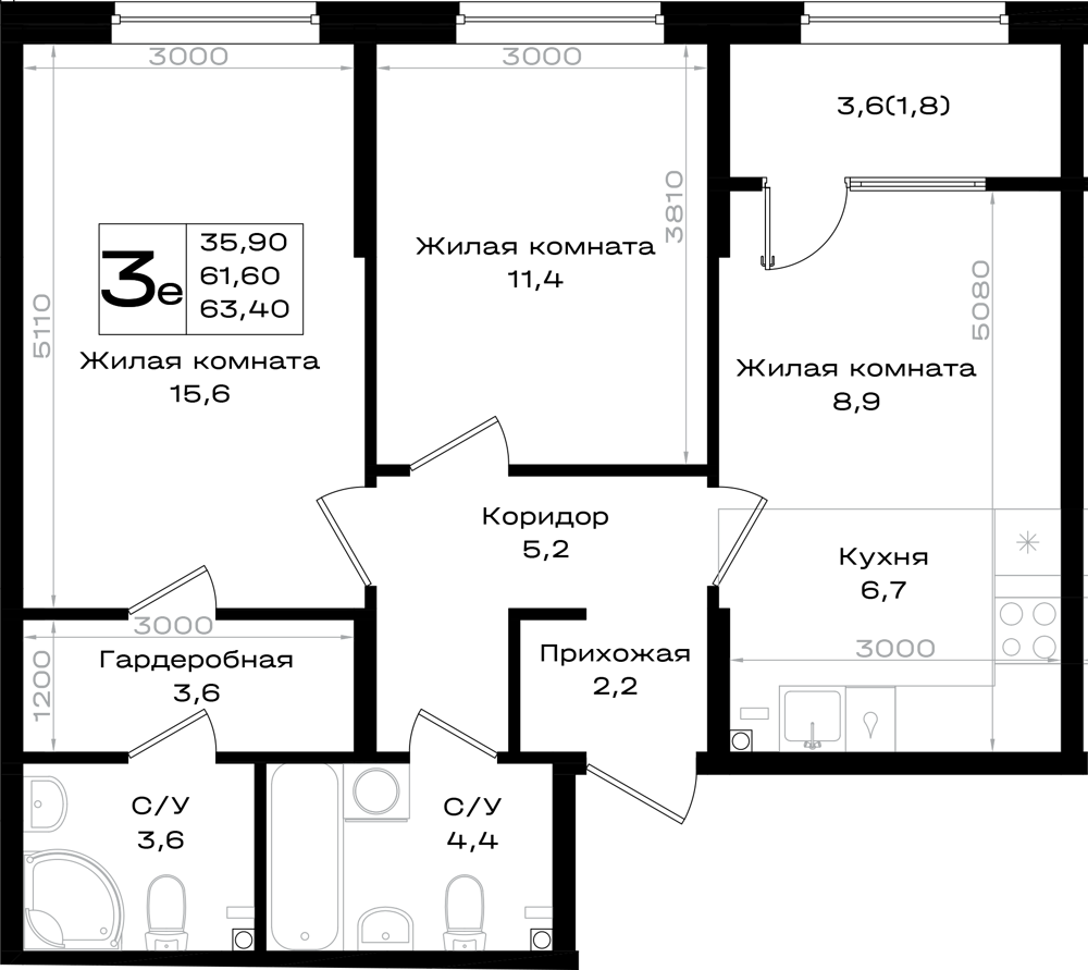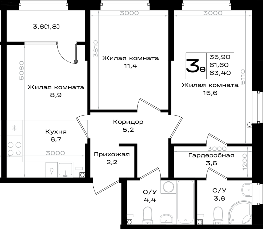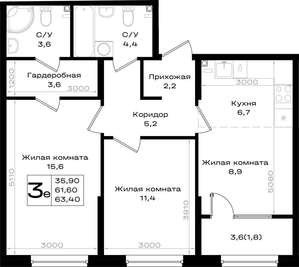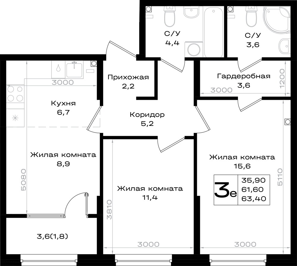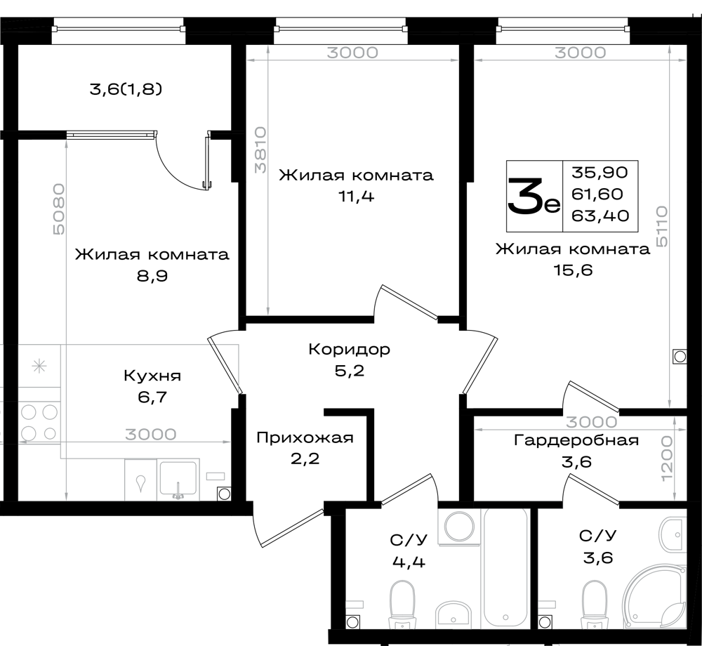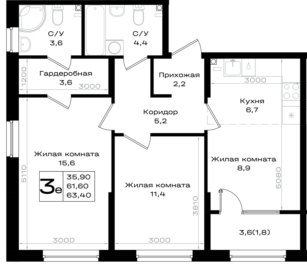 3-комнатная (63.4м2)
