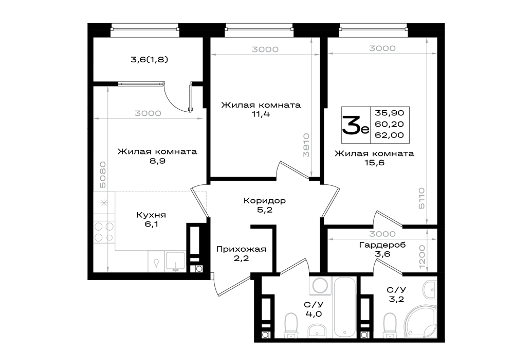 3-комнатная (62м2)