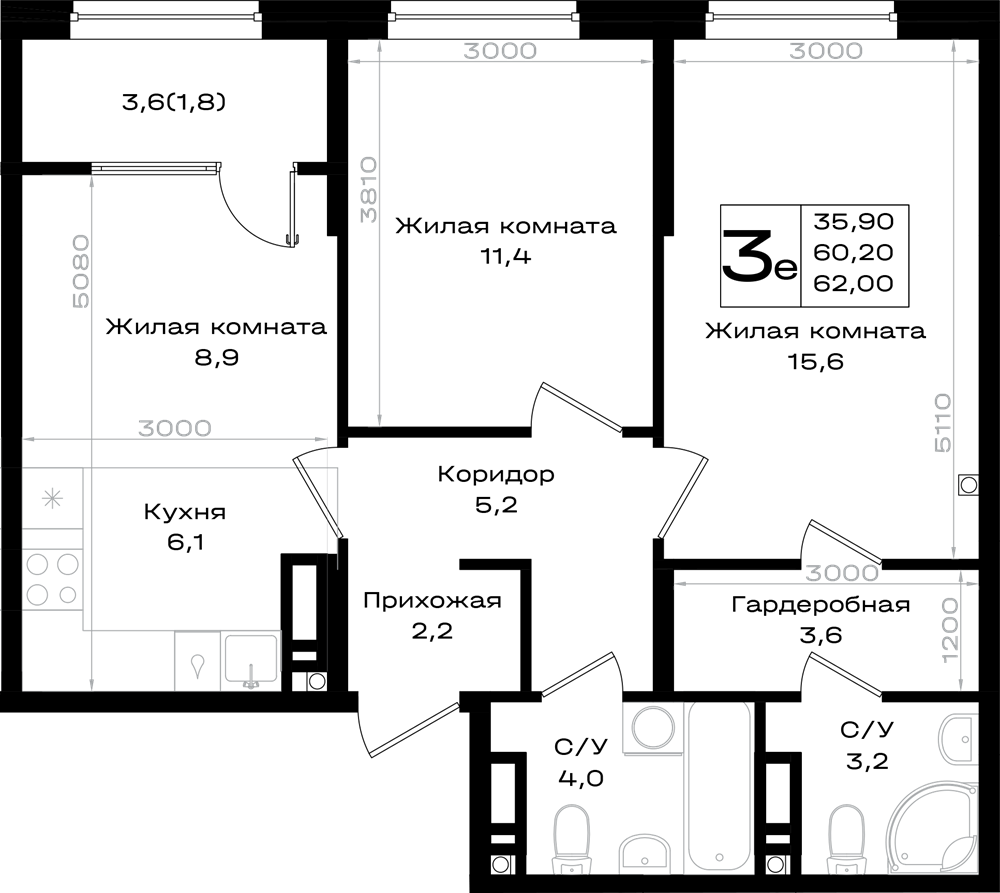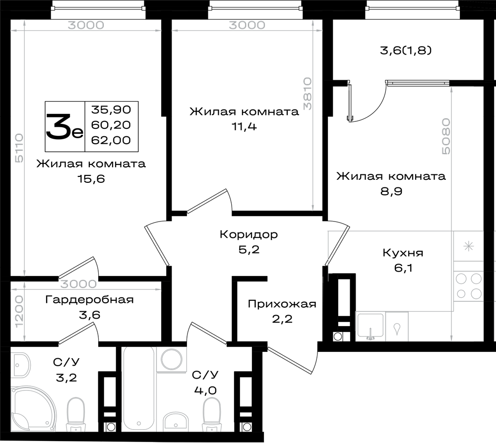 3-комнатная (62м2)