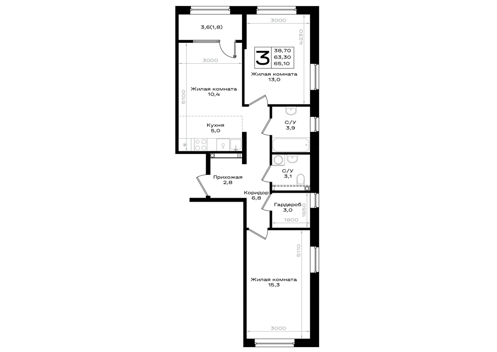 3-комнатная (65.1м2)